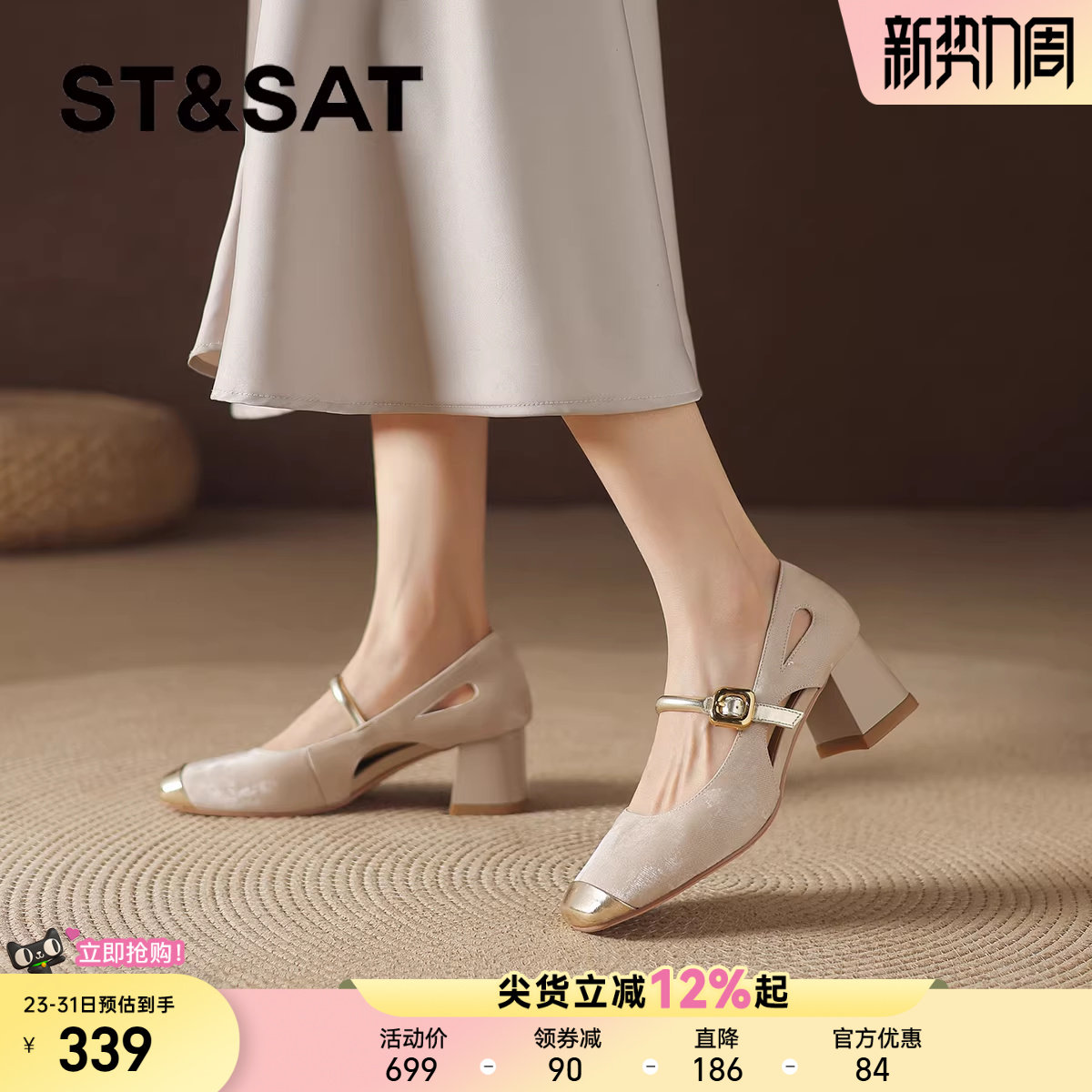 星期六高跟单鞋女2026新款春季法式玛丽珍鞋子镂空粗跟新中式女鞋