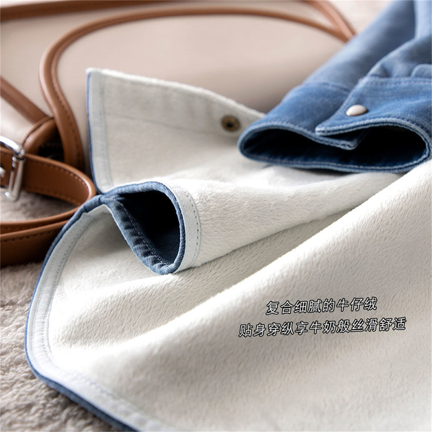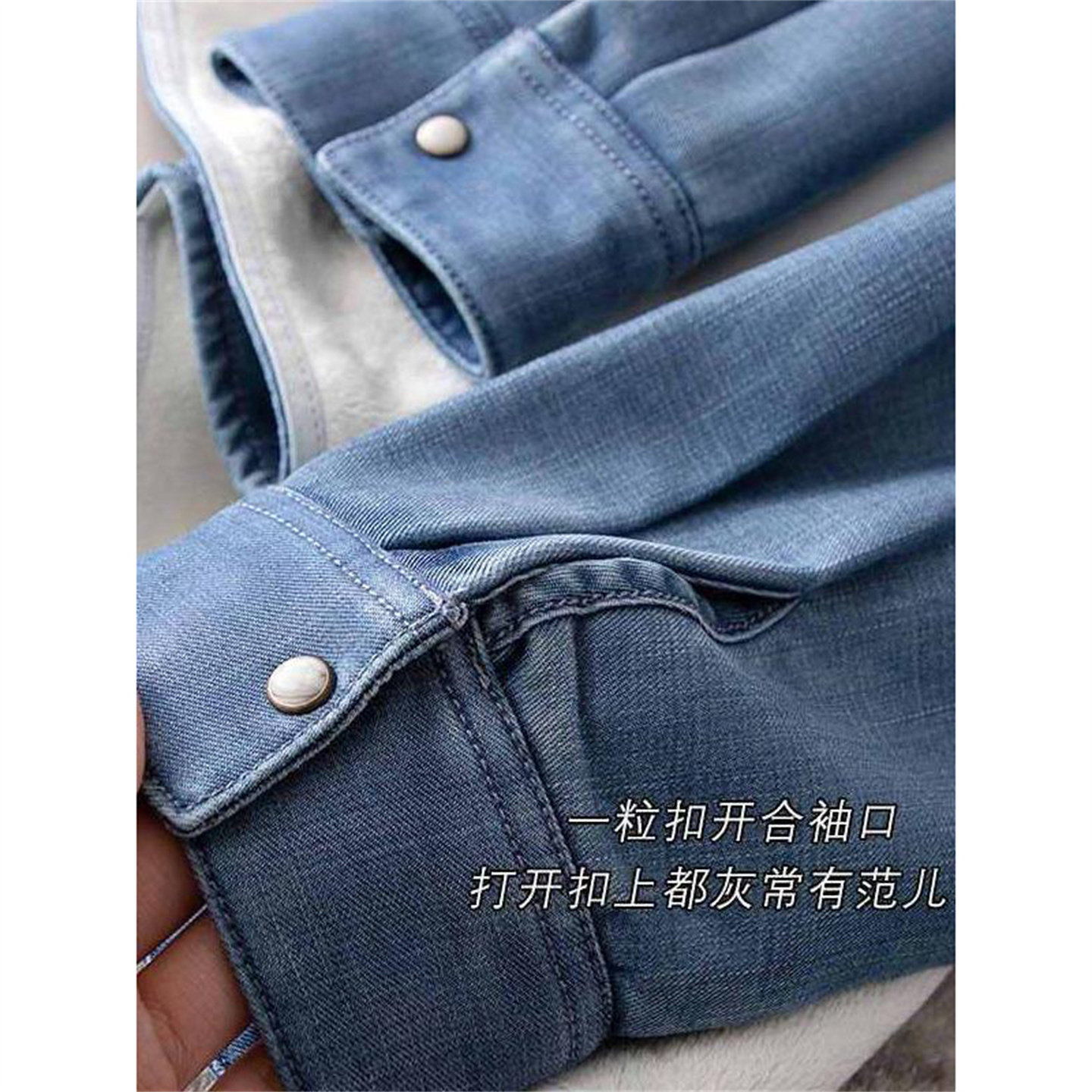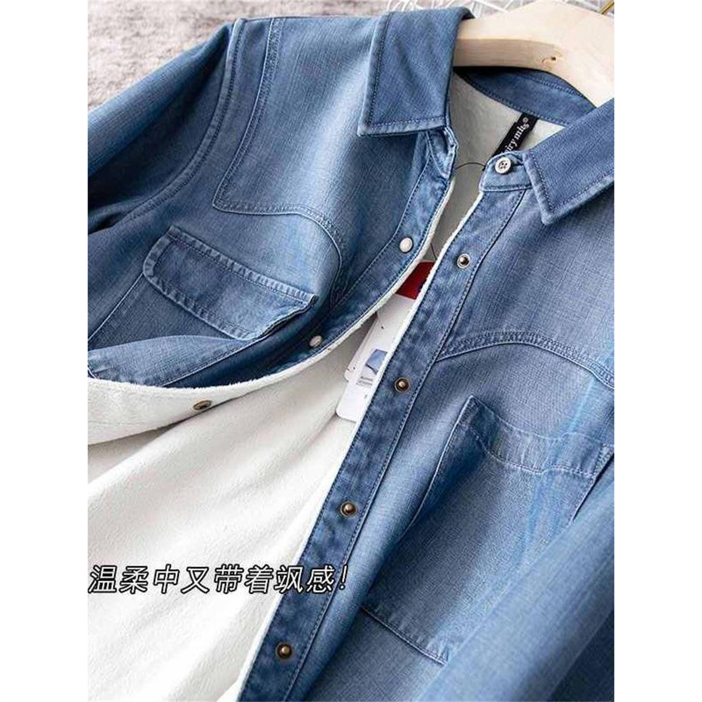 浅蓝色休闲风牛仔衬衫女春秋长袖宽松翻领纽扣加厚打底衫气质上衣