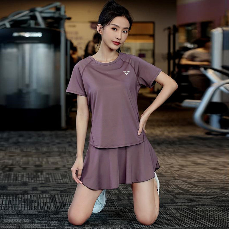 瑜伽服速干衣大码夏季防走光薄款晨跑显瘦运动健身套装短袖短裤女