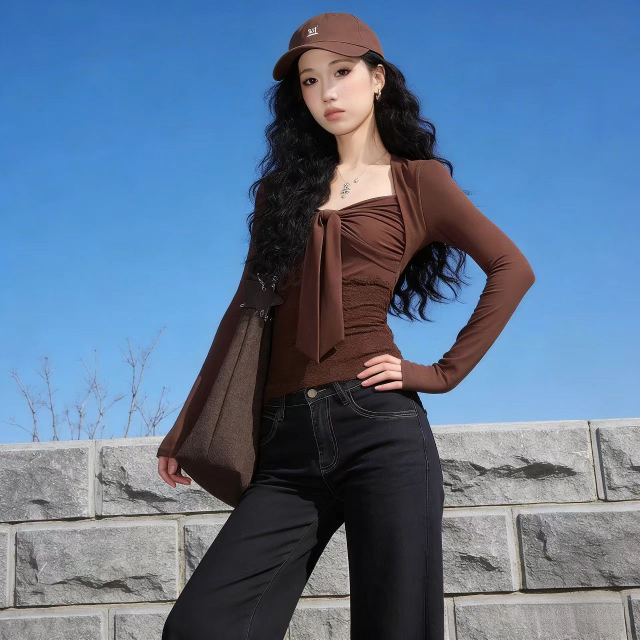 美式拼接假两件长袖t恤春季新款加厚修身显瘦打底衫女款内搭上衣
