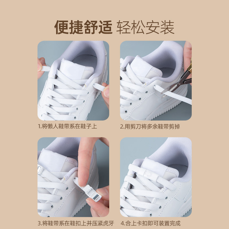 鞋带扣固定器适配nike空军一号dunk懒人鞋带免系神器黑色白色扁平