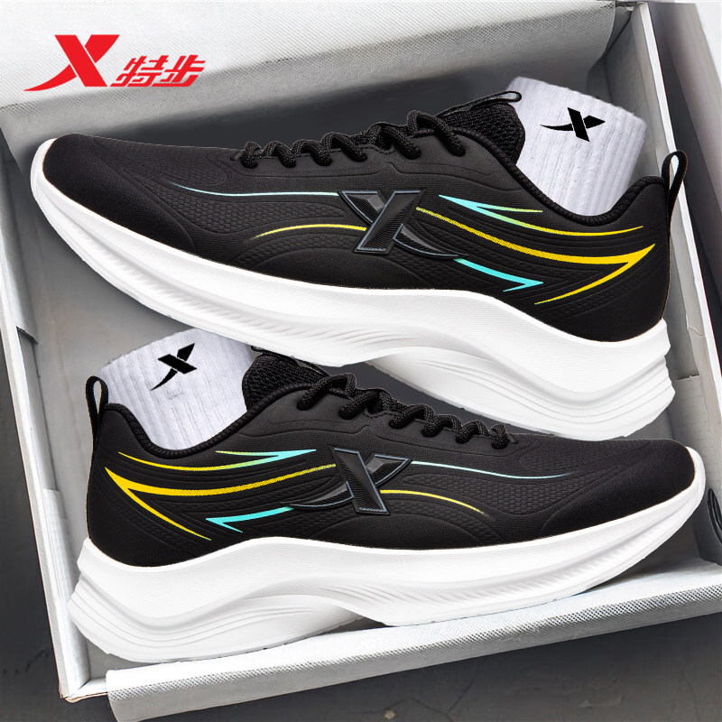 特步运动鞋男款减震官方正品男士休闲鞋子夏季新款皮面防水跑步鞋