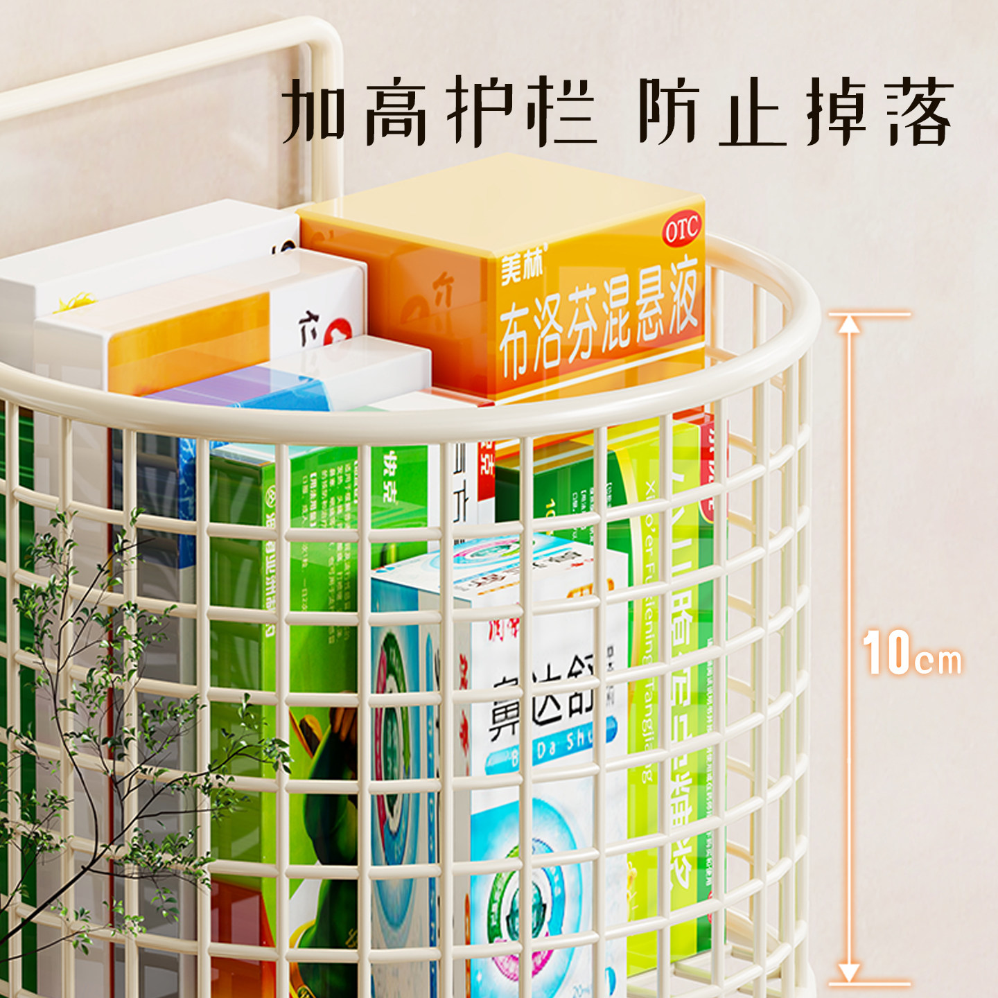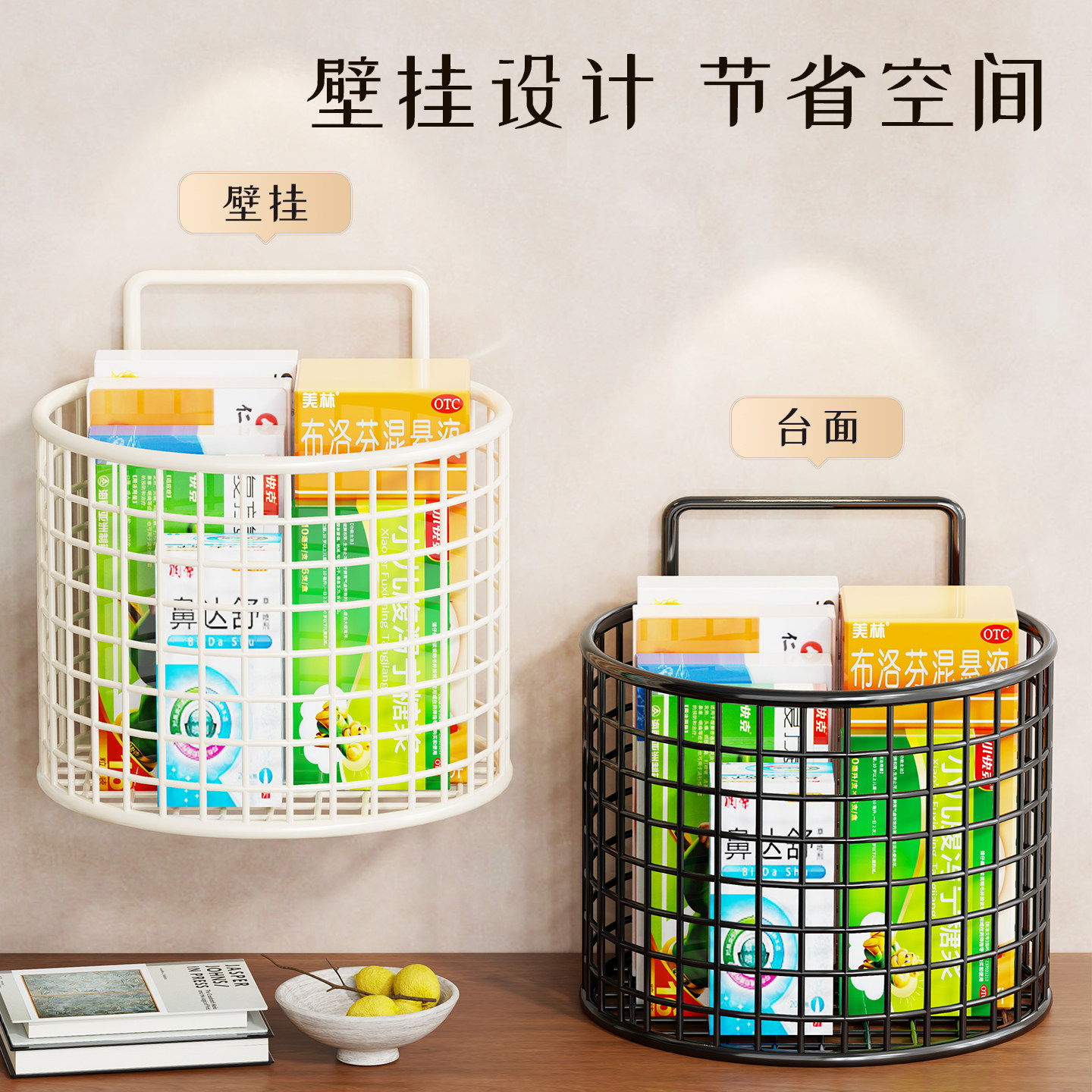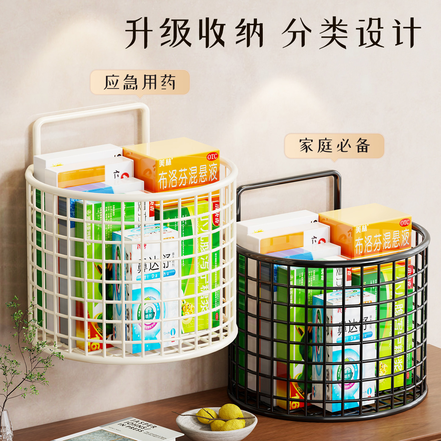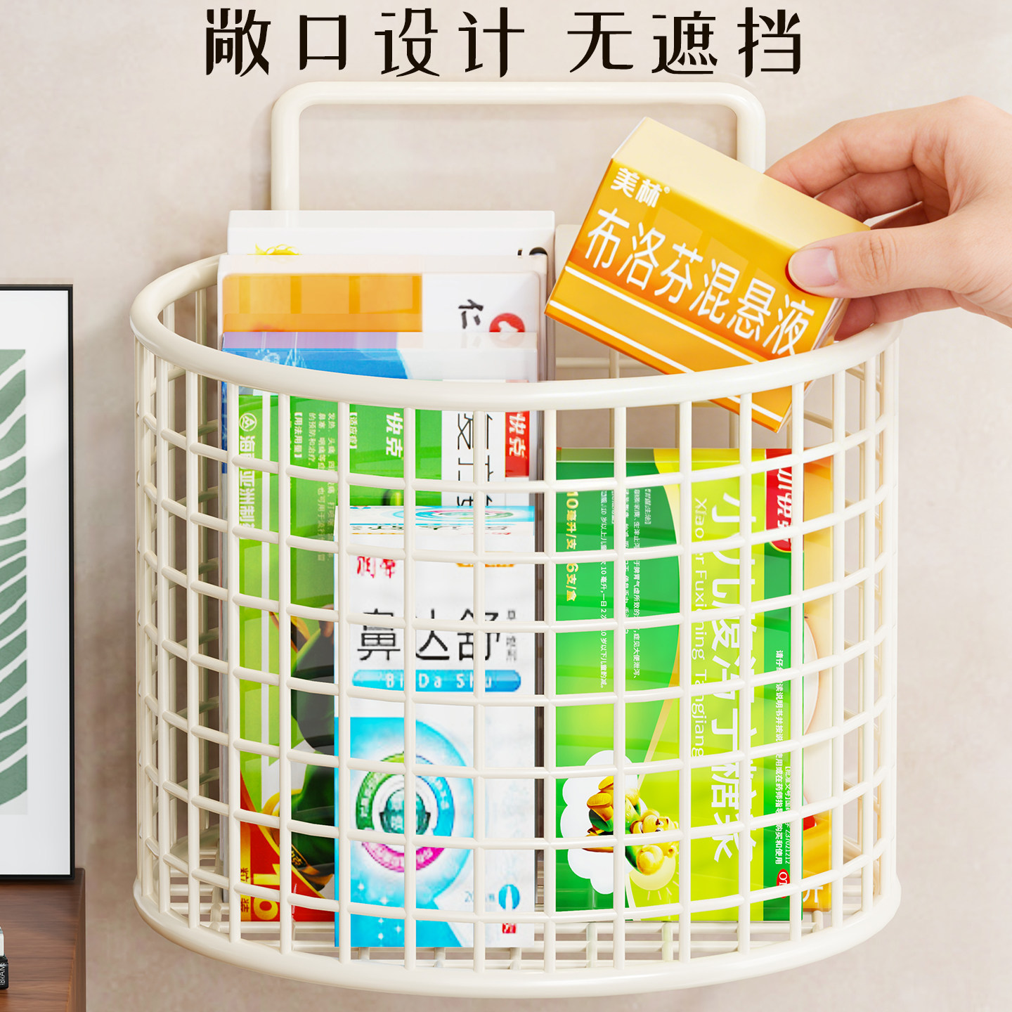 药物收纳篮壁挂式药品储物筐必备药品置物篮墙面医药分类整理箱子
