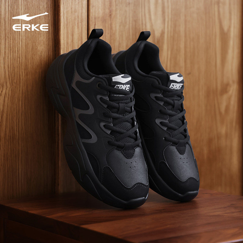 鸿星尔克板鞋男鞋春季新款休闲鞋厚底鞋子爸爸黑色鞋子百搭运动鞋