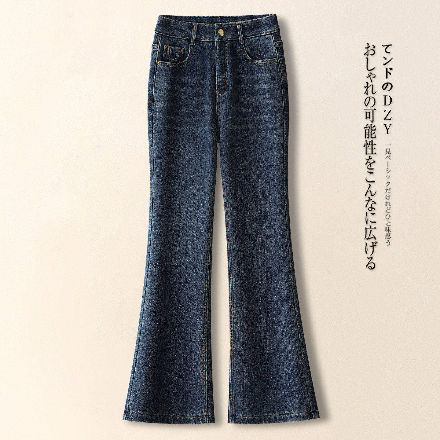 拉夏贝尔超好看牛仔蓝微喇裤牛仔裤女春季2026新款直筒喇叭马蹄裤