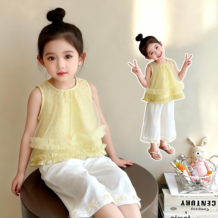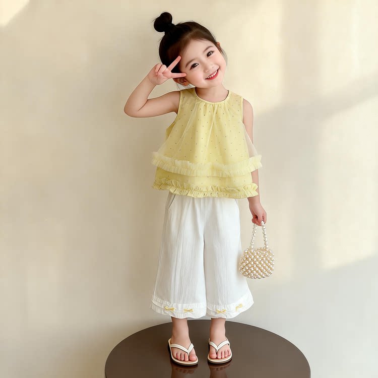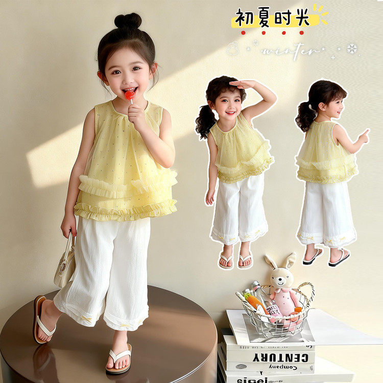 女童套装2026新款夏季无袖t恤衬衫薄款裤子宽松女宝超好看两件套