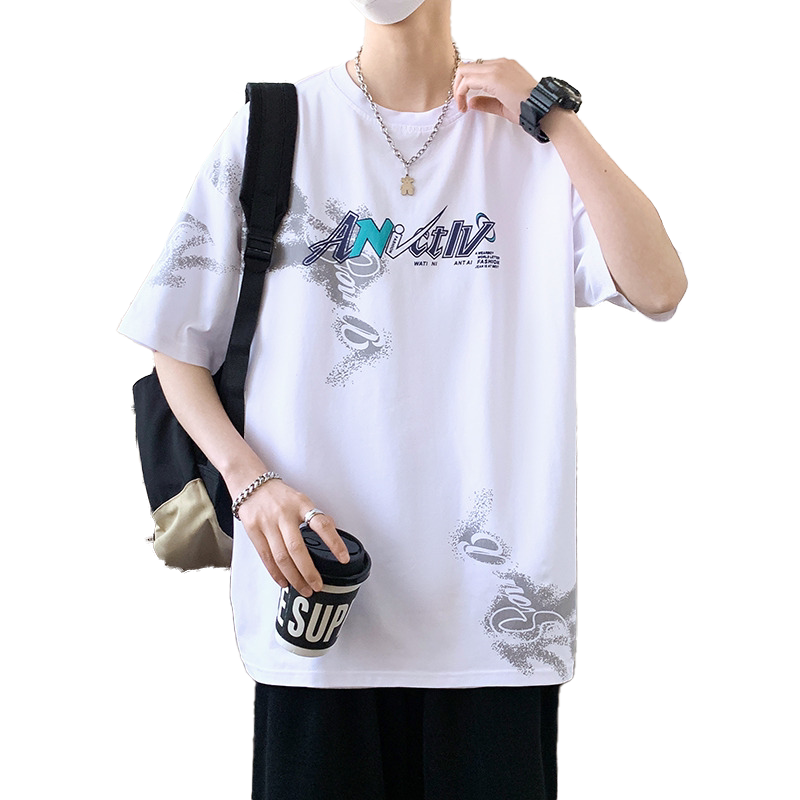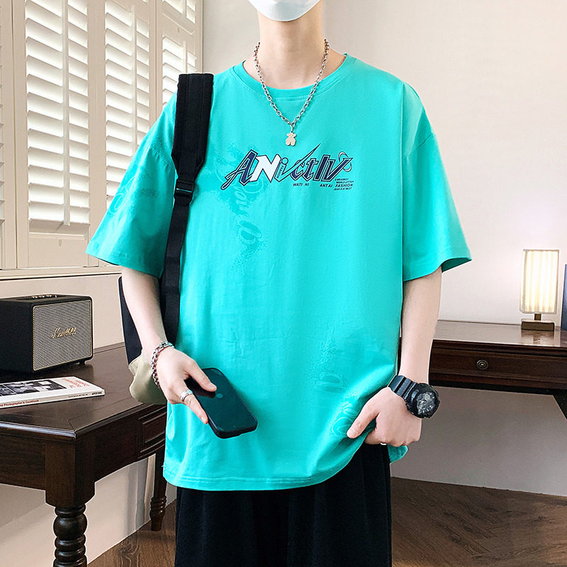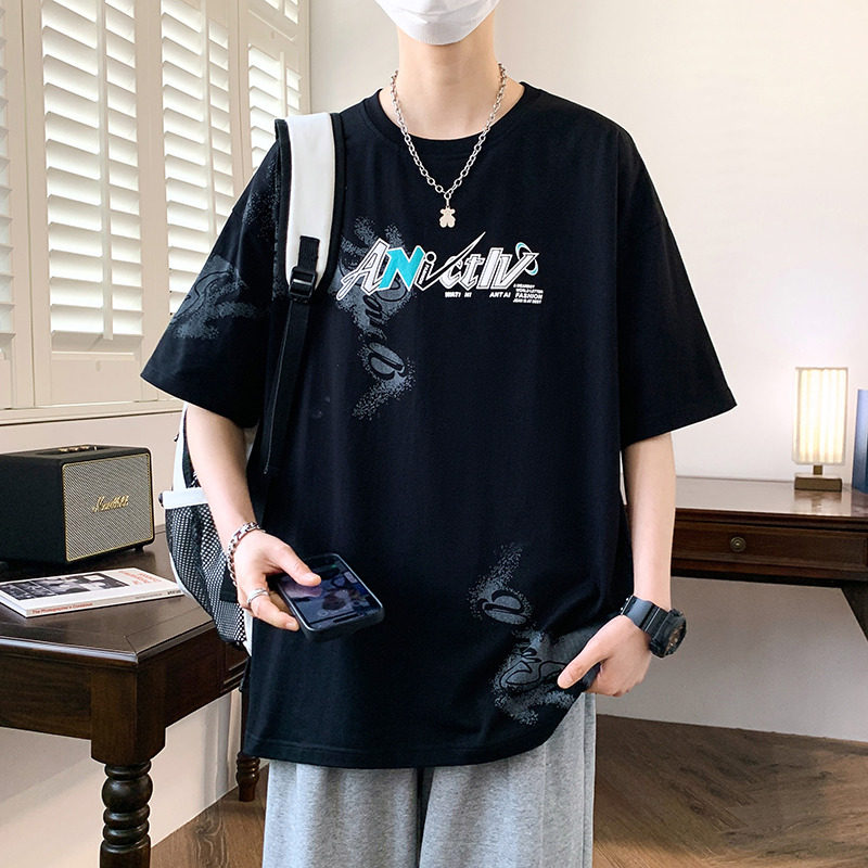 青少年短袖t恤男孩初中生学生帅气夏装2026新款大童纯棉宽松潮牌