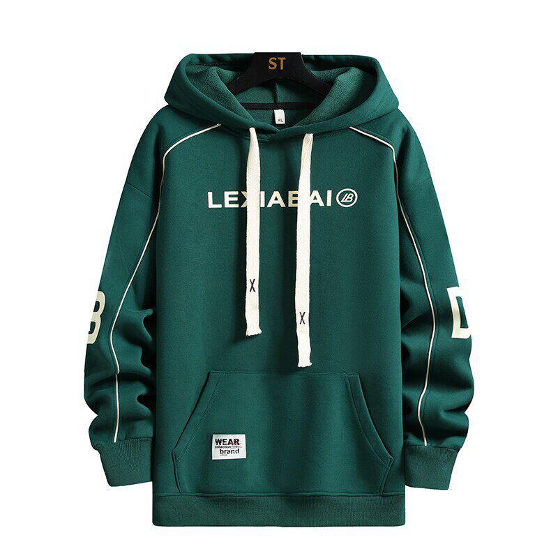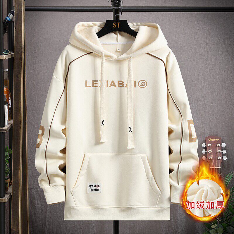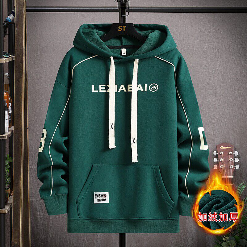 青少年男孩秋冬季加绒连帽卫衣初中学生15岁大童帅气纯棉加厚上衣