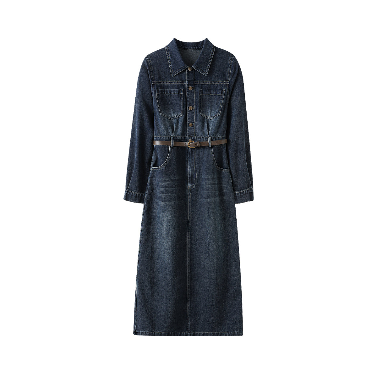 311线报网描述:千金风 衬衫款 牛仔长裙