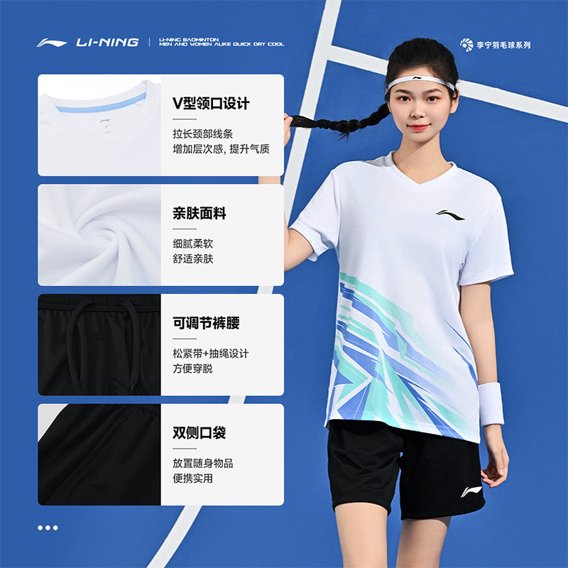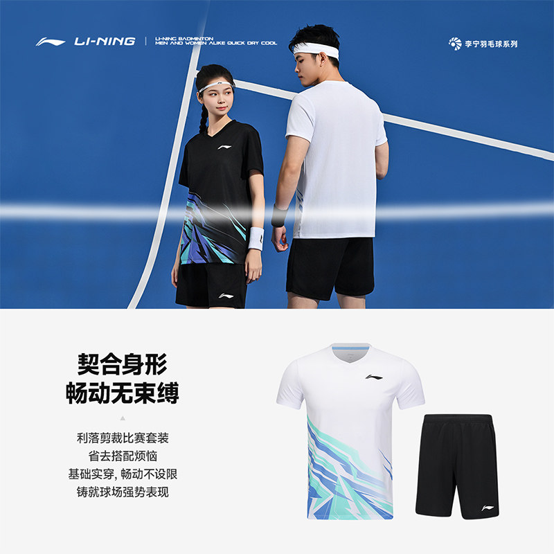 李宁新款羽毛球男女同款比赛服速干透气吸汗专业训练服短袖套装