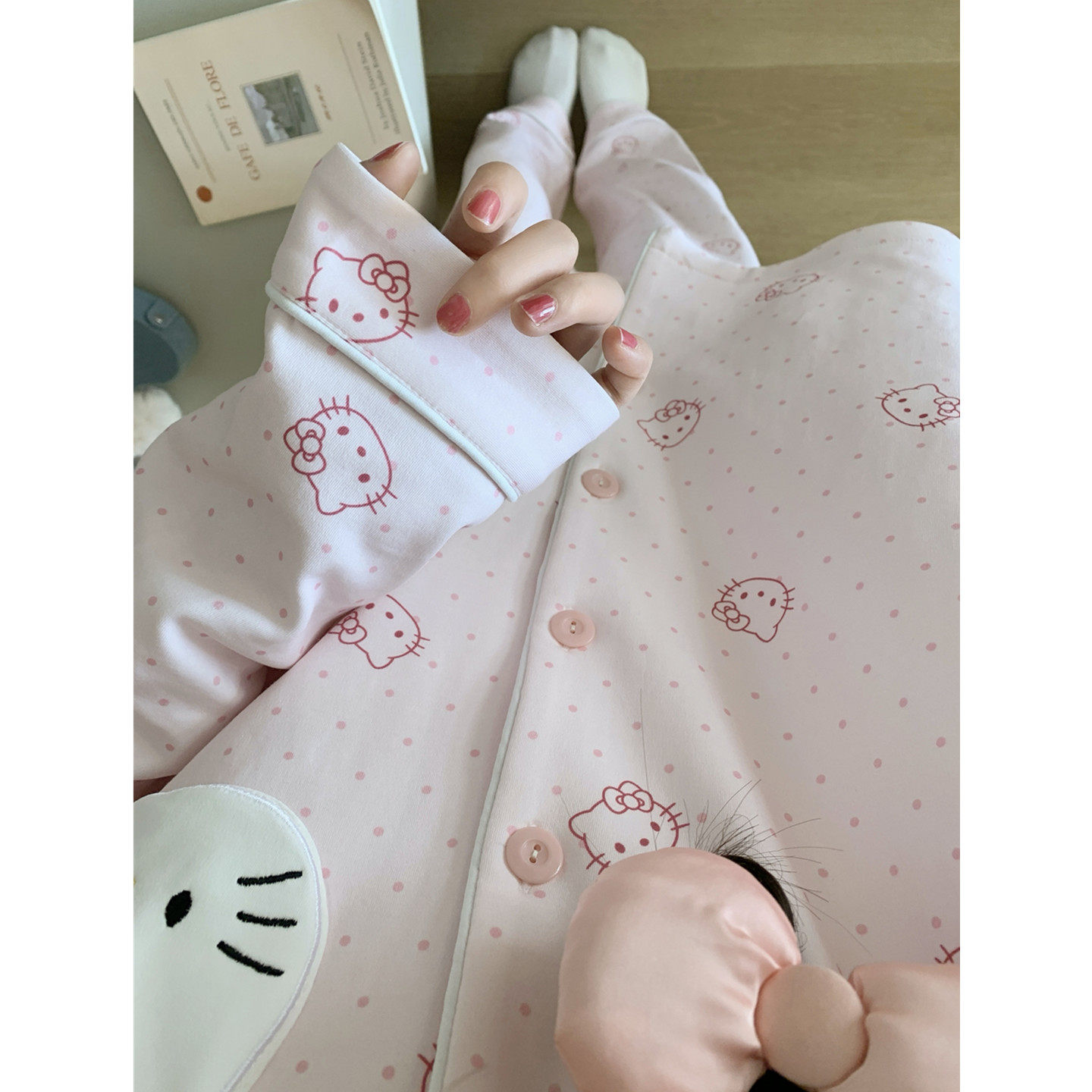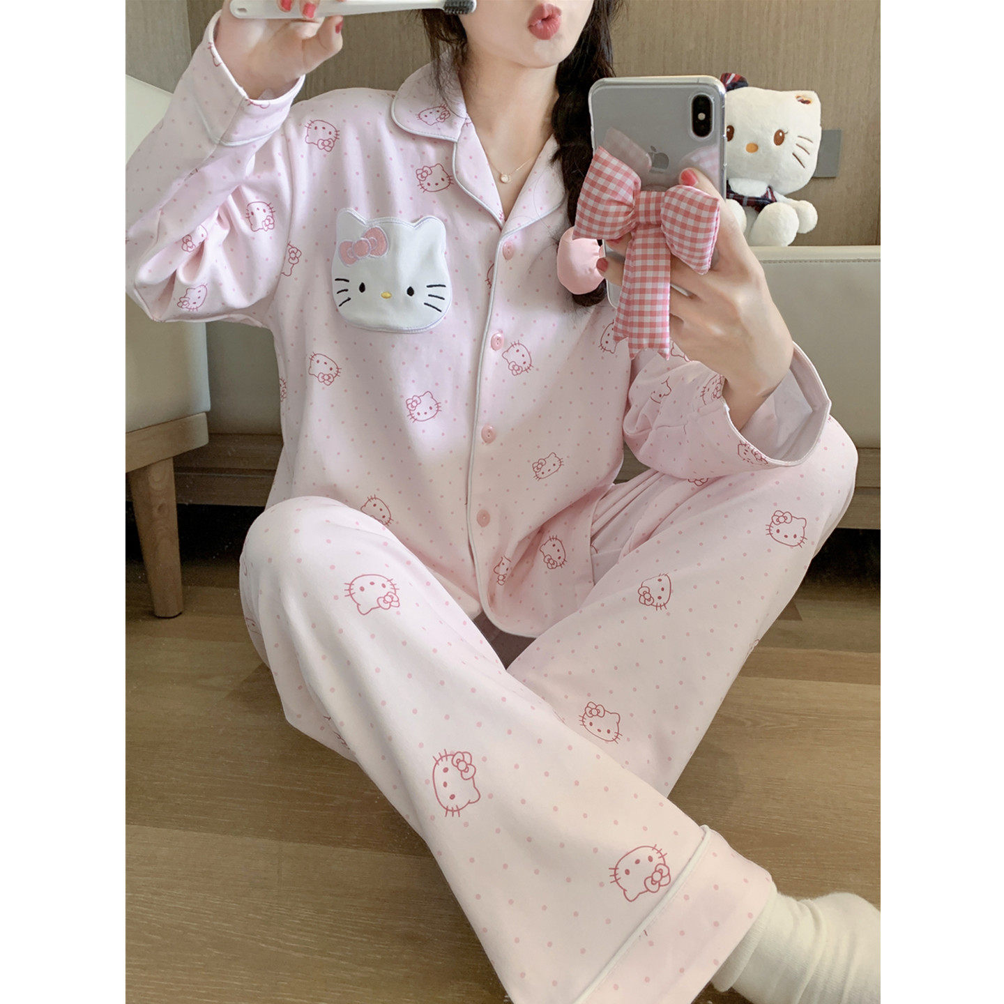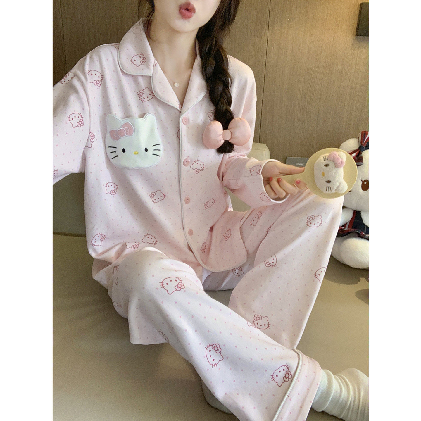 甜美波点KT猫纯棉睡衣女款春秋季2026新款可爱卡通长袖套装家居服