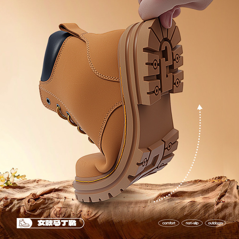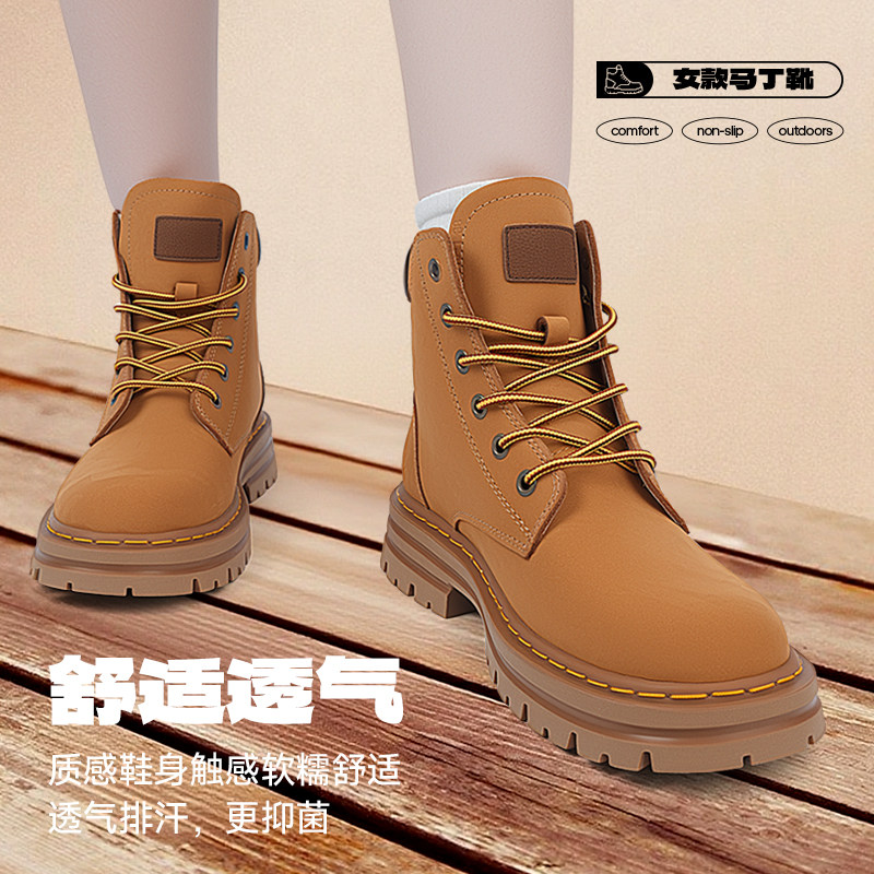 大黄靴马丁靴女款春秋2026新款英伦风夏季厚底靴子登山鞋工装短靴