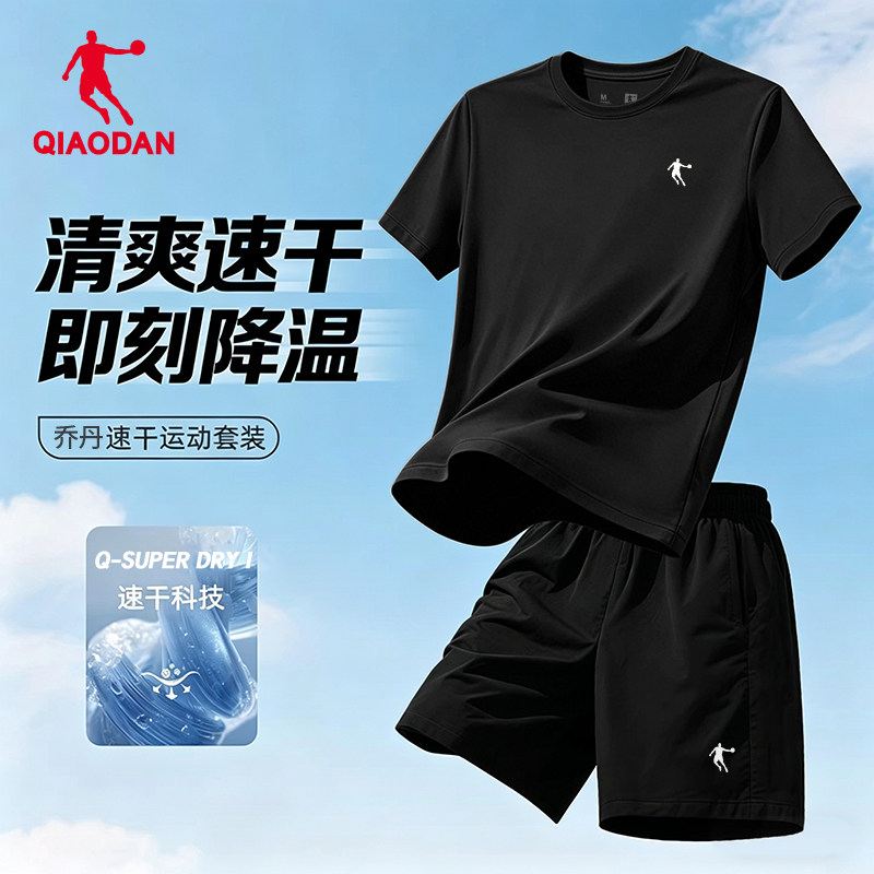 乔丹跑步运动套装男款短袖短裤冰丝速干两件套夏季健身训练运动服