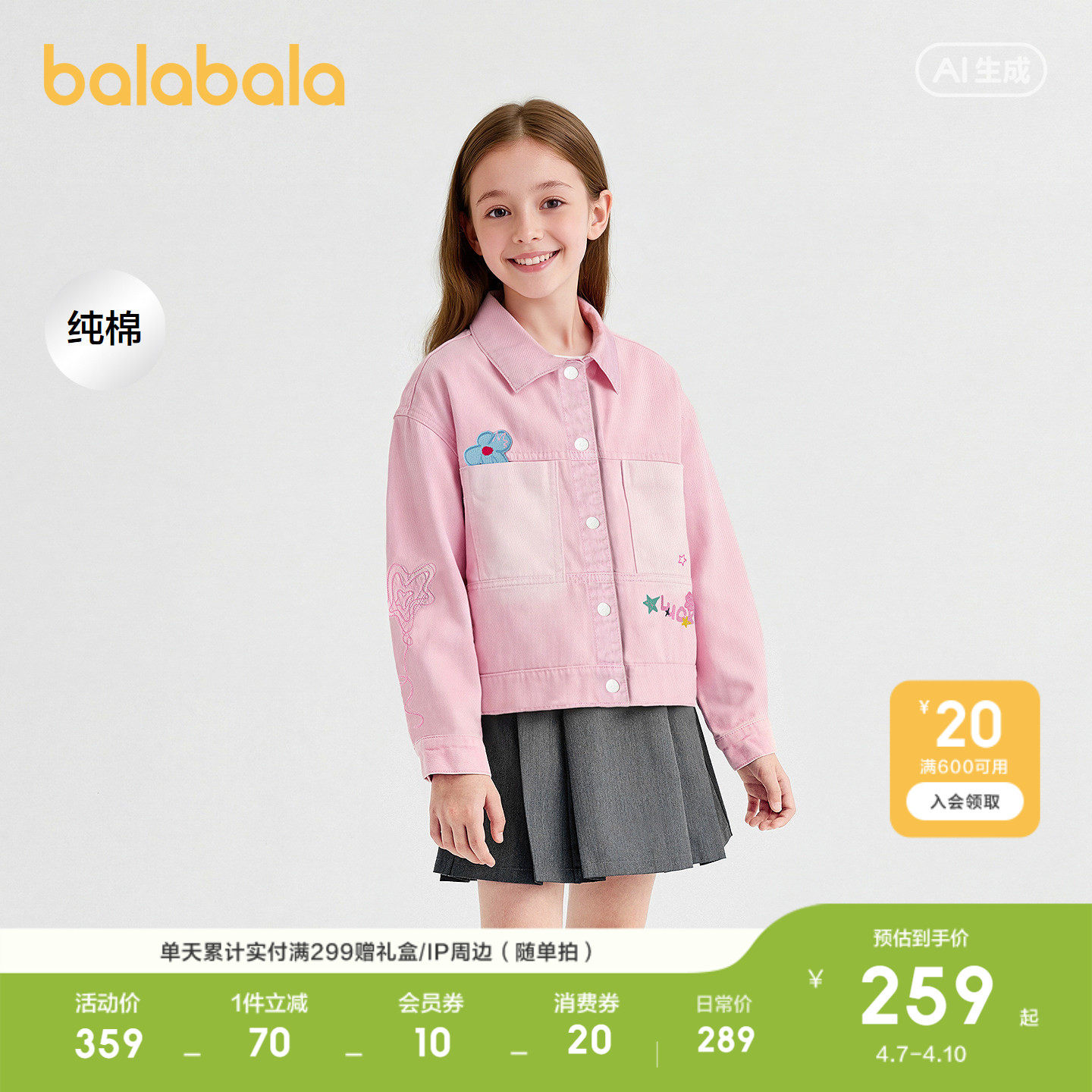【商场同款】巴拉巴拉童装女童外套儿童牛仔上衣2026新款春装纯棉