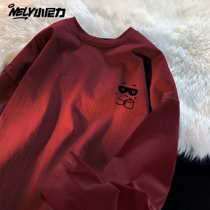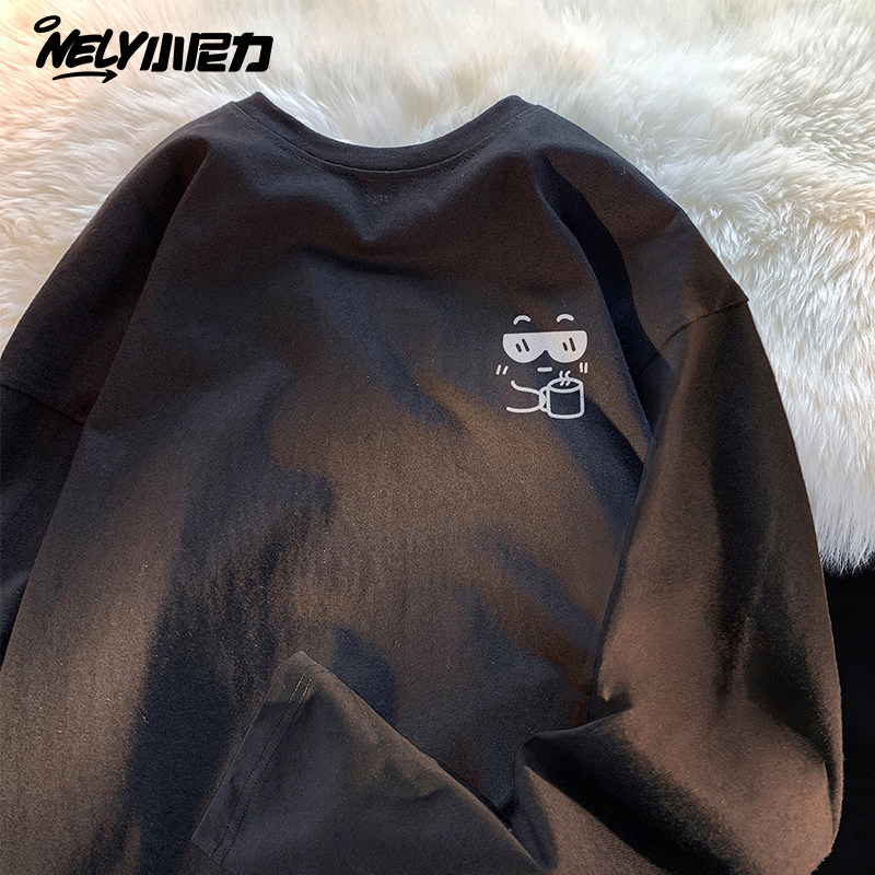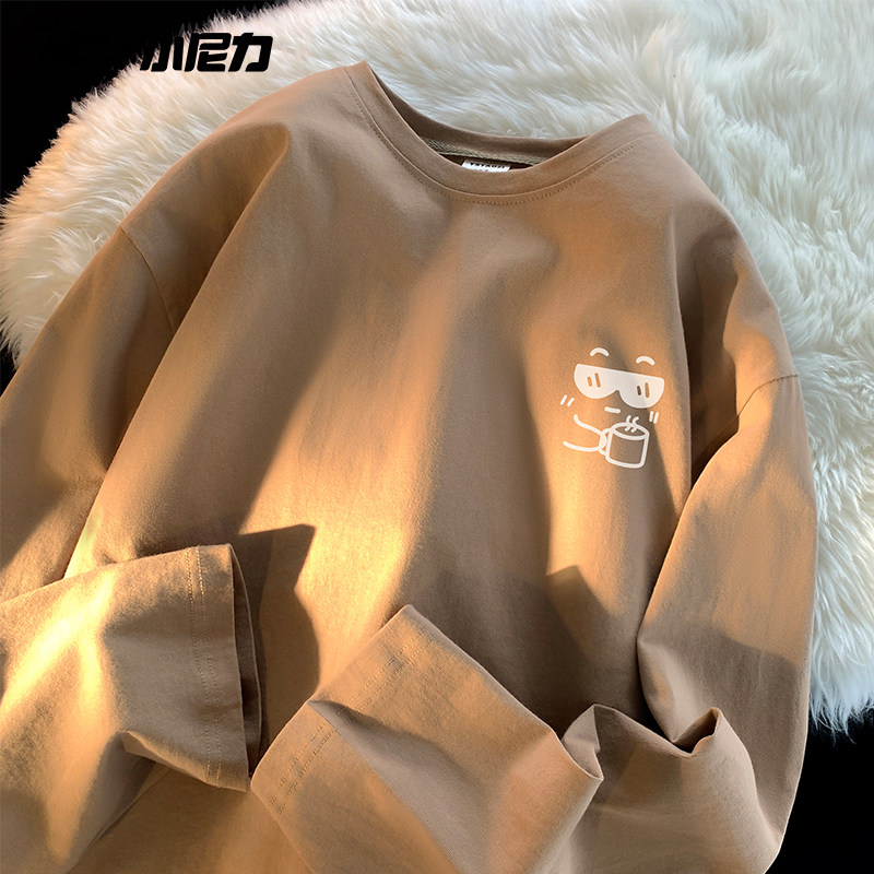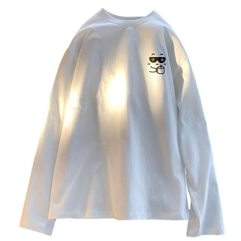 白色长袖T恤男春秋季纯棉美式潮牌潮流体恤青少年宽松百搭上衣服