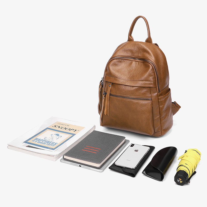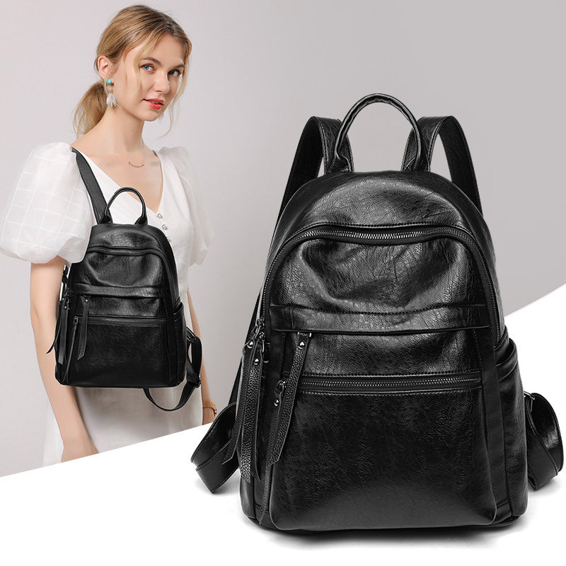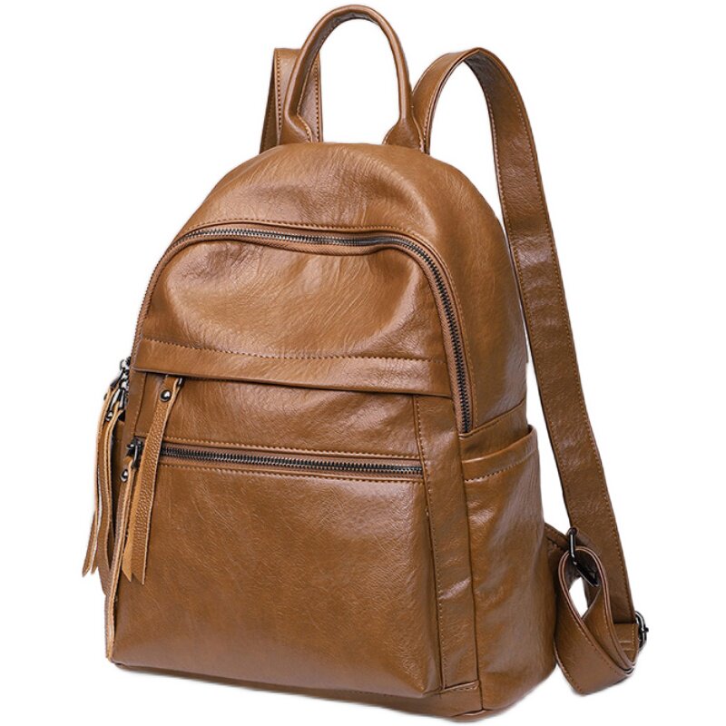 m&k双肩包女2025新款时尚百搭真皮软皮包大容量女士背包旅行休闲