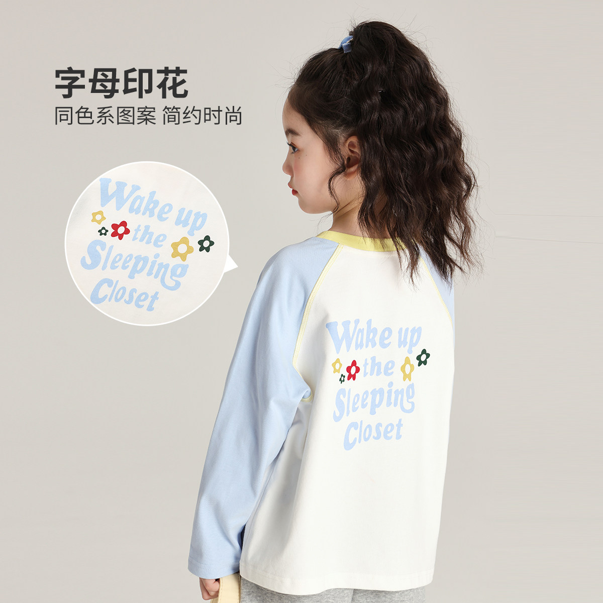 布丁哈鲁童装春装女童打底衫上衣2026春秋新款儿童拼色纯棉长袖