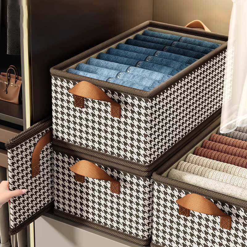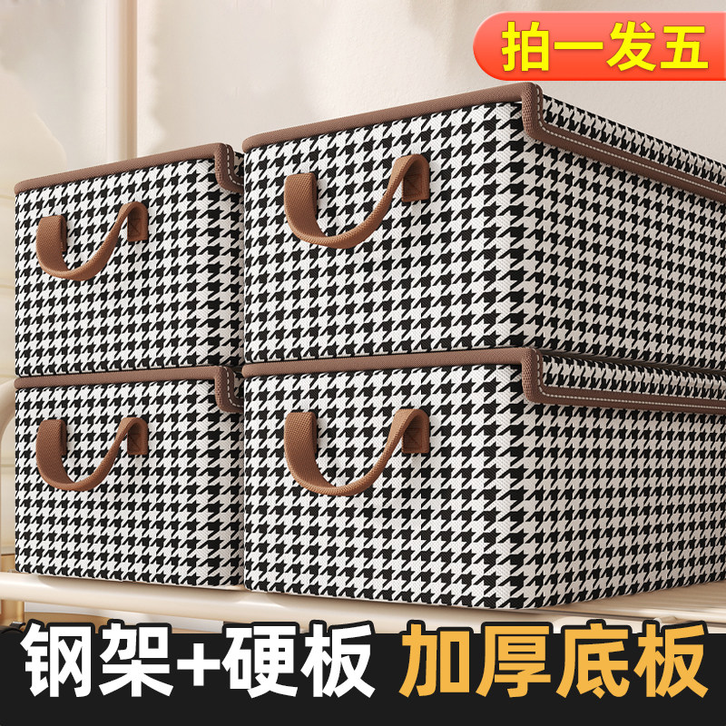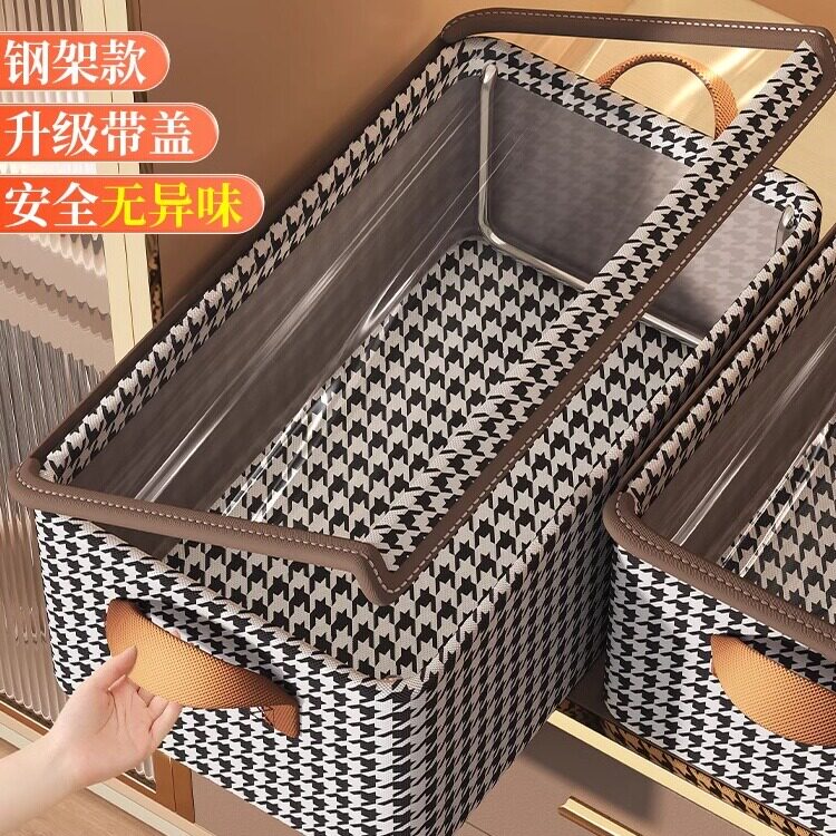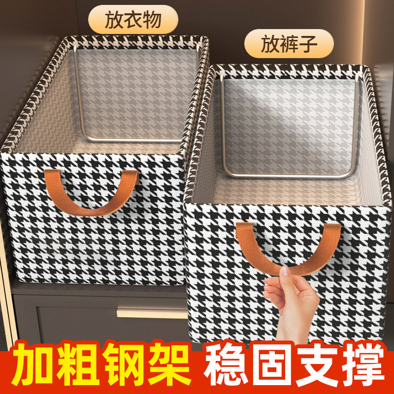 千鸟格衣服裤子收纳盒放衣柜收纳箱带盖家用折叠整理盒分层收纳筐