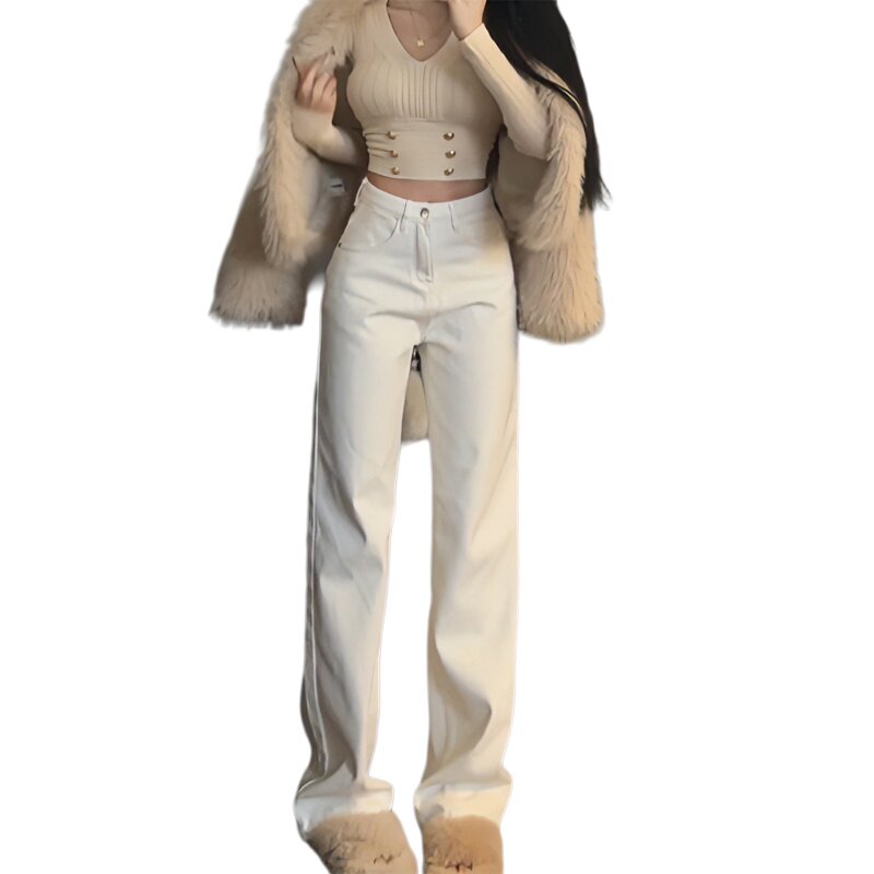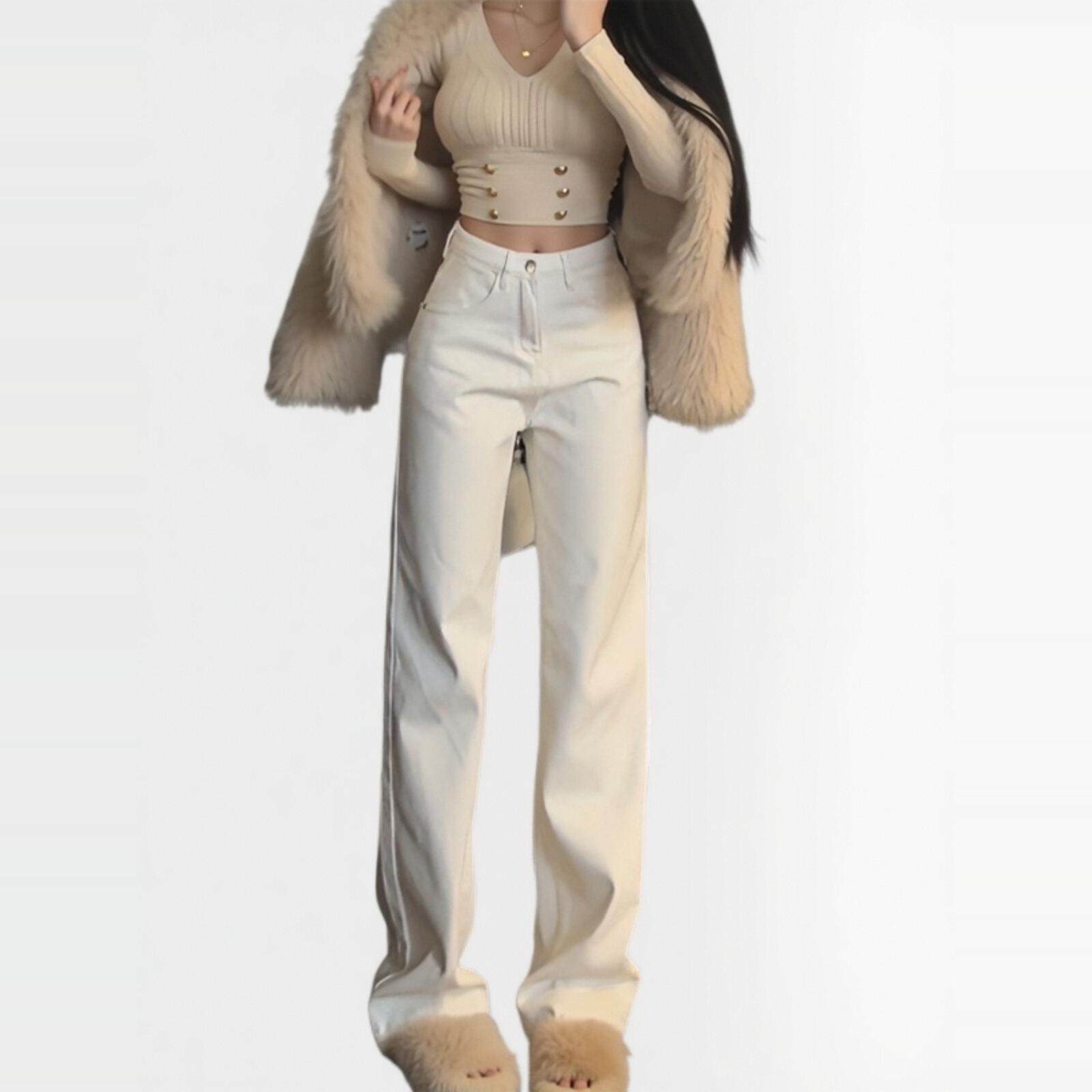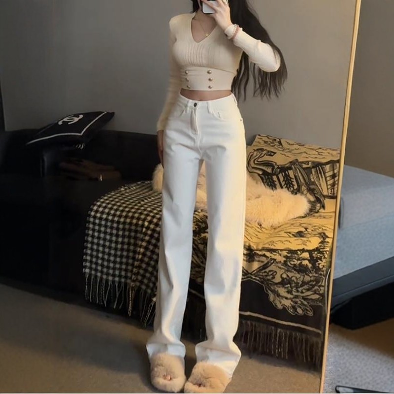 李李服饰白色高腰阔腿牛仔裤女2026春季新款显瘦堆堆直筒裤子
