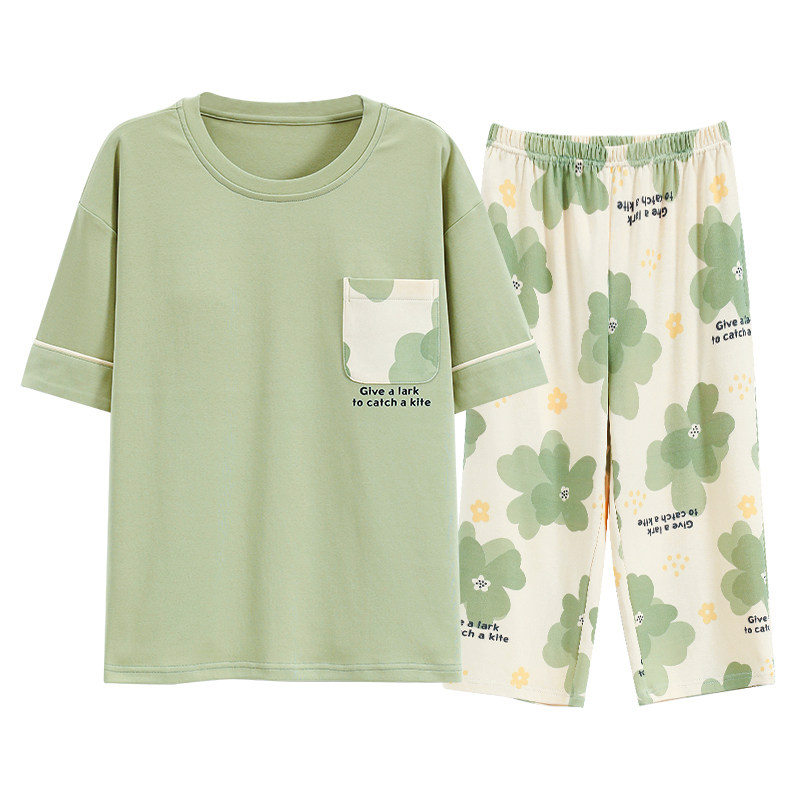 浪莎纯棉睡衣女款夏季薄款短袖七分裤2026新款女士套头家居服套装