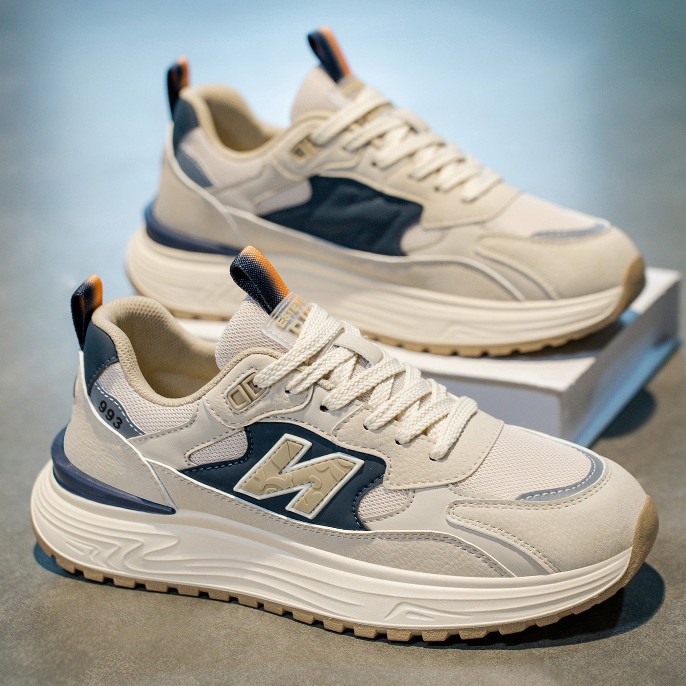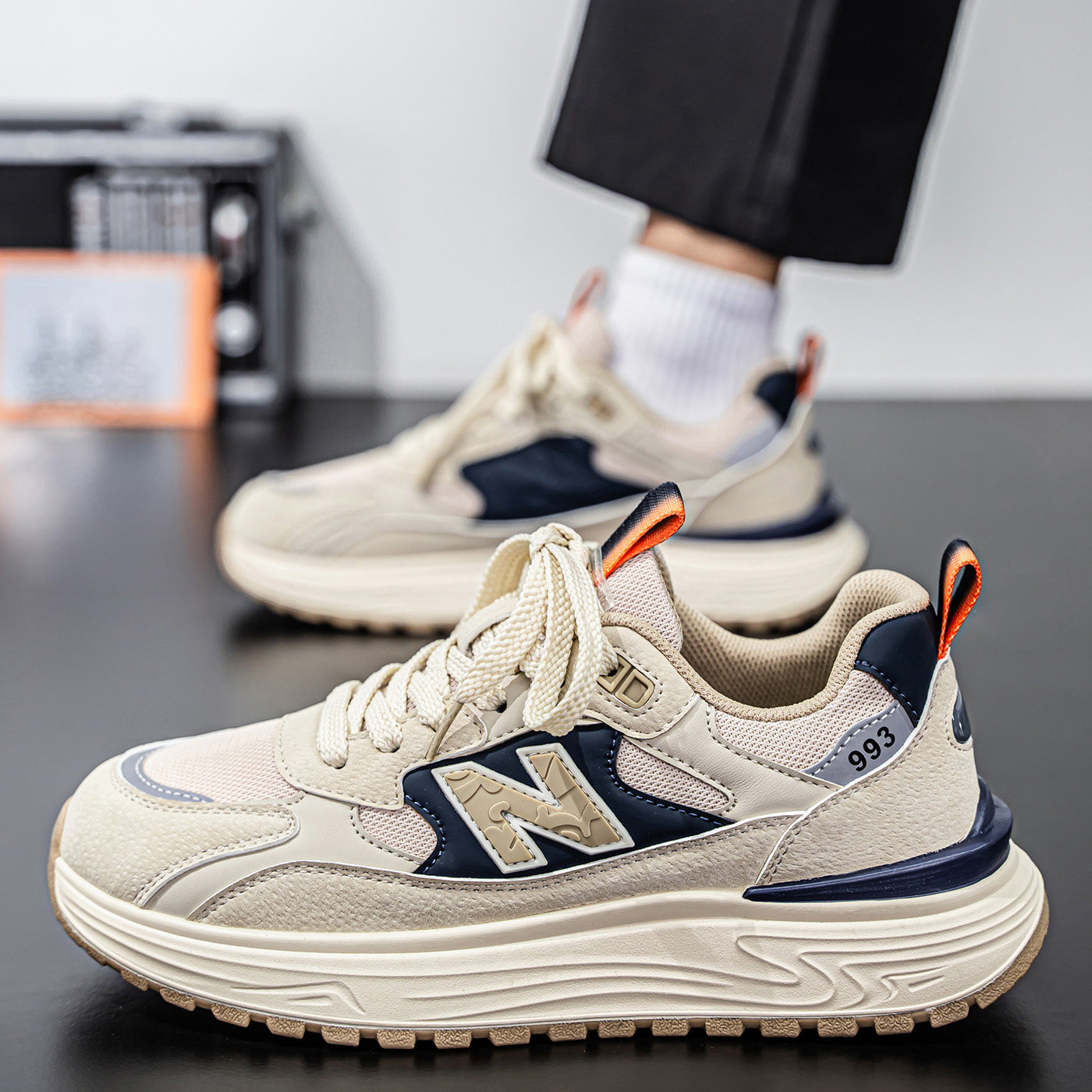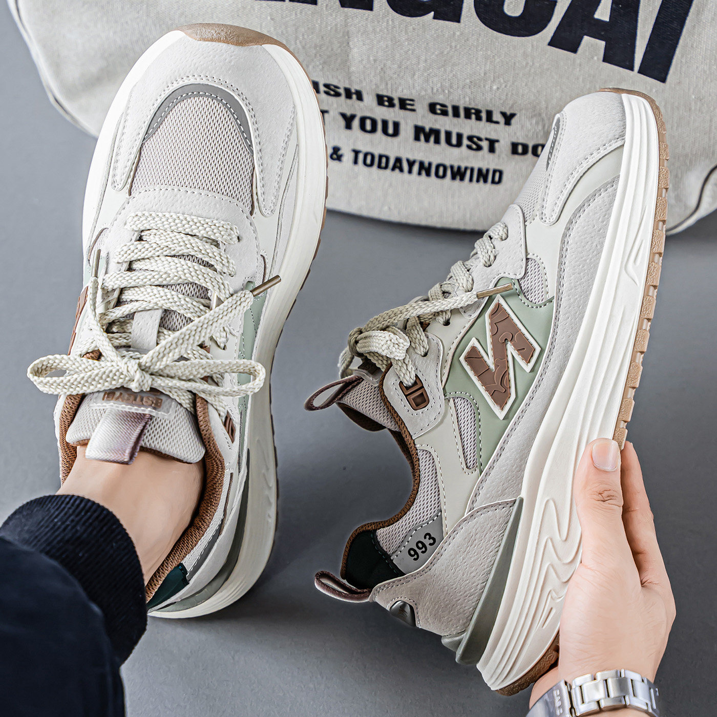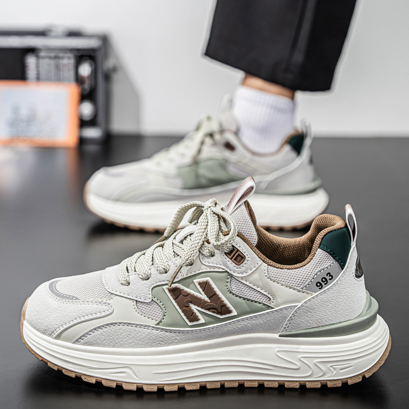 男鞋2026新款春季网面透气百搭跑步运动鞋潮牌高级休闲增高老爹鞋