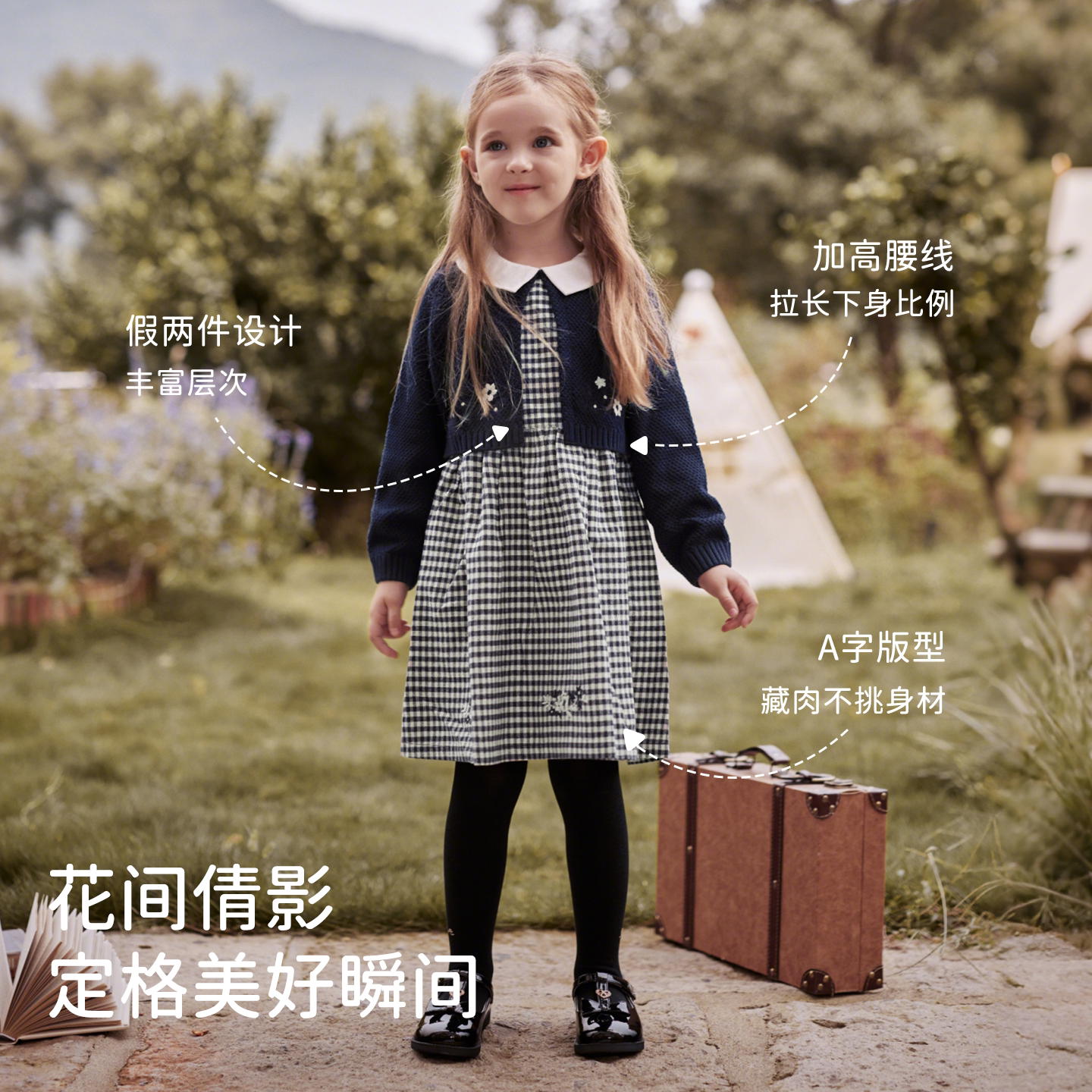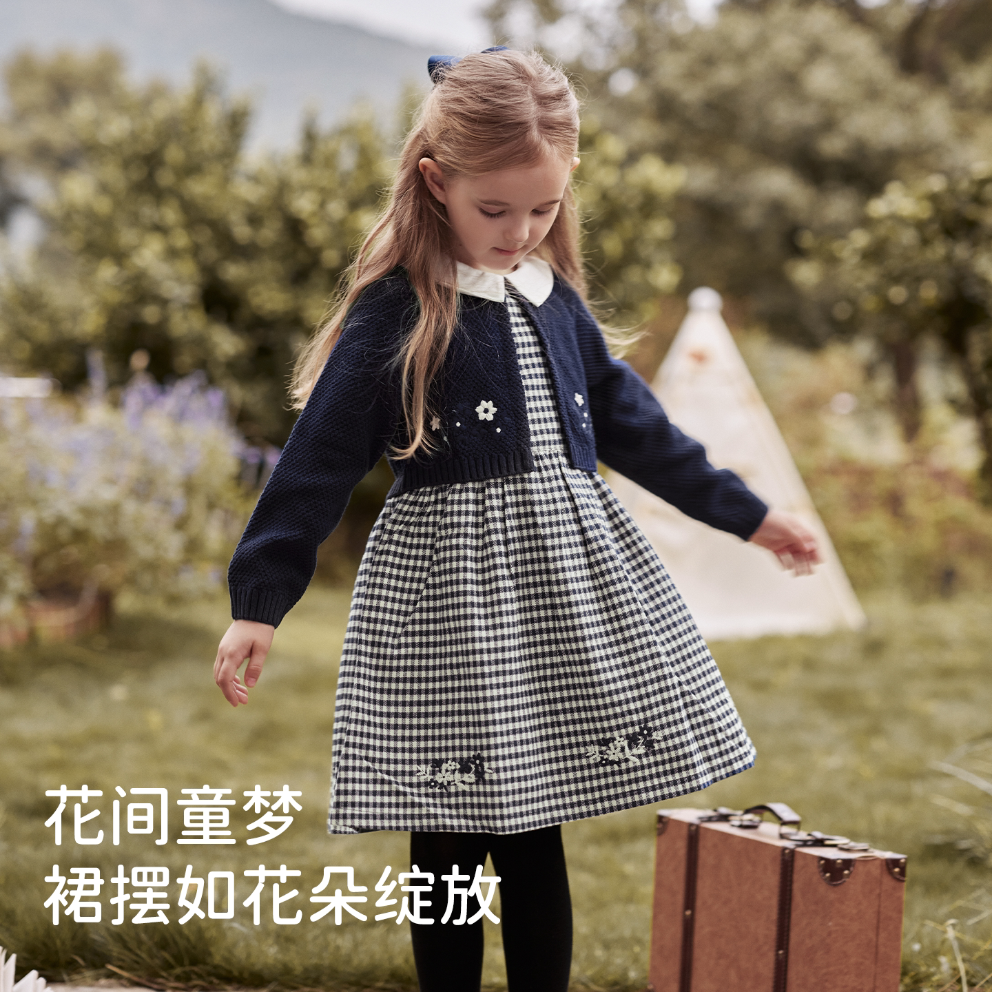 戴维贝拉儿童毛衣连衣裙2026春装女童假两件针织裙宝宝长袖厚裙子