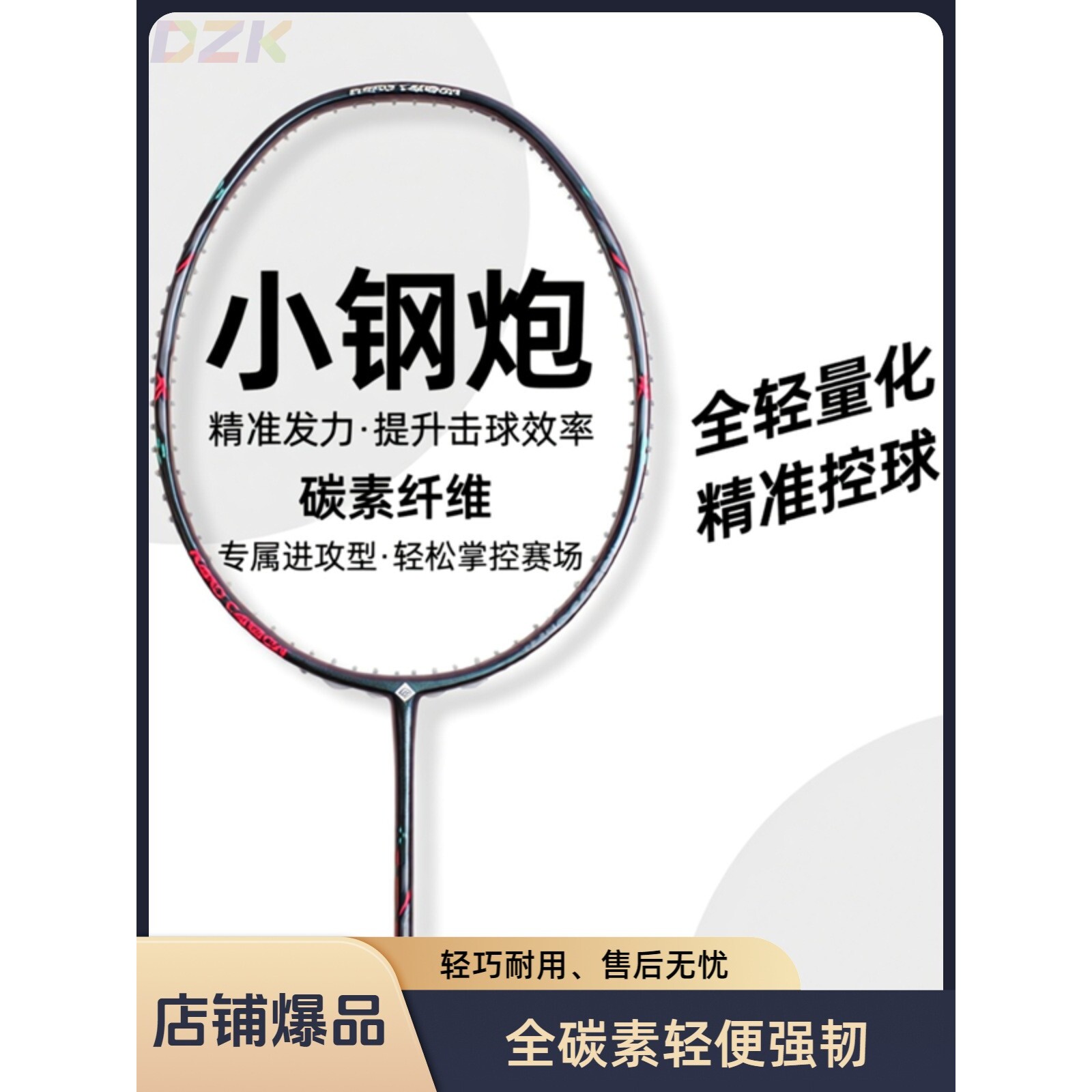 羽毛球拍小钢炮进攻型轻量5u家用成人羽毛球拍全碳素羽毛球拍高.6