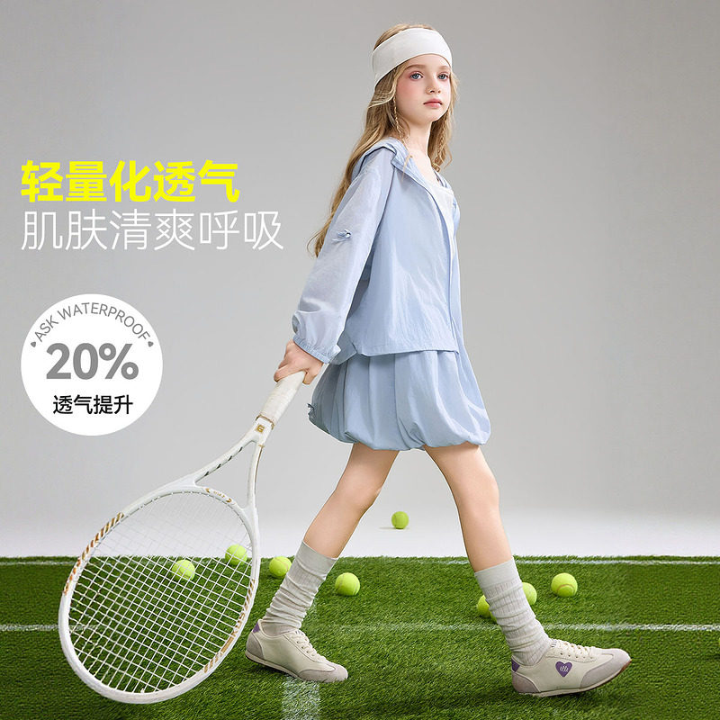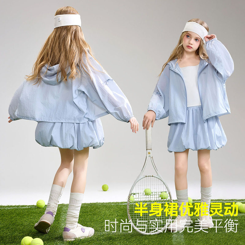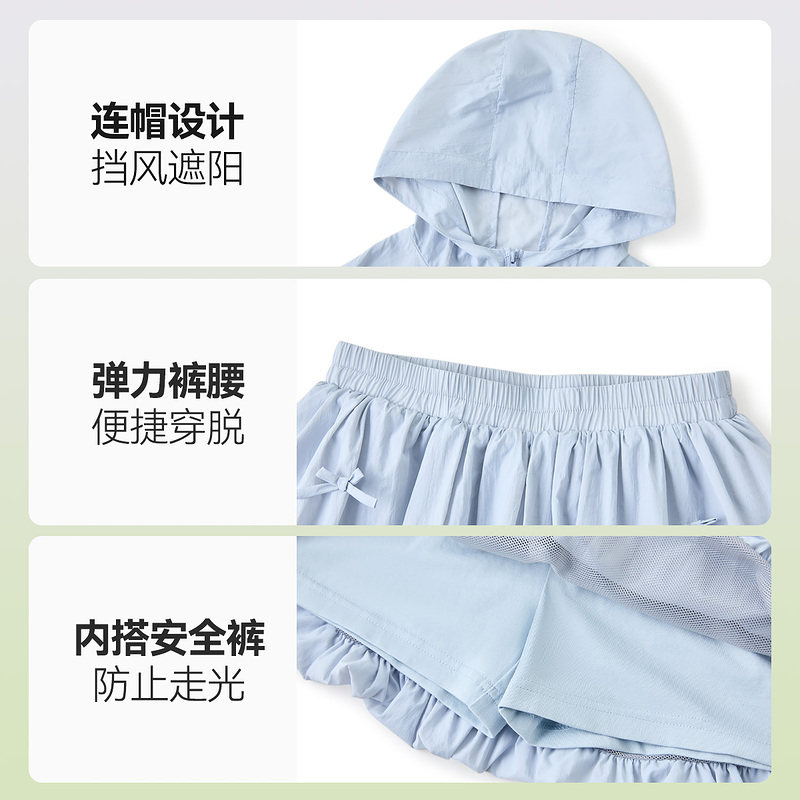 ask儿童套装2026夏季新款女童连帽透气外套中大童甜美半身裙两件