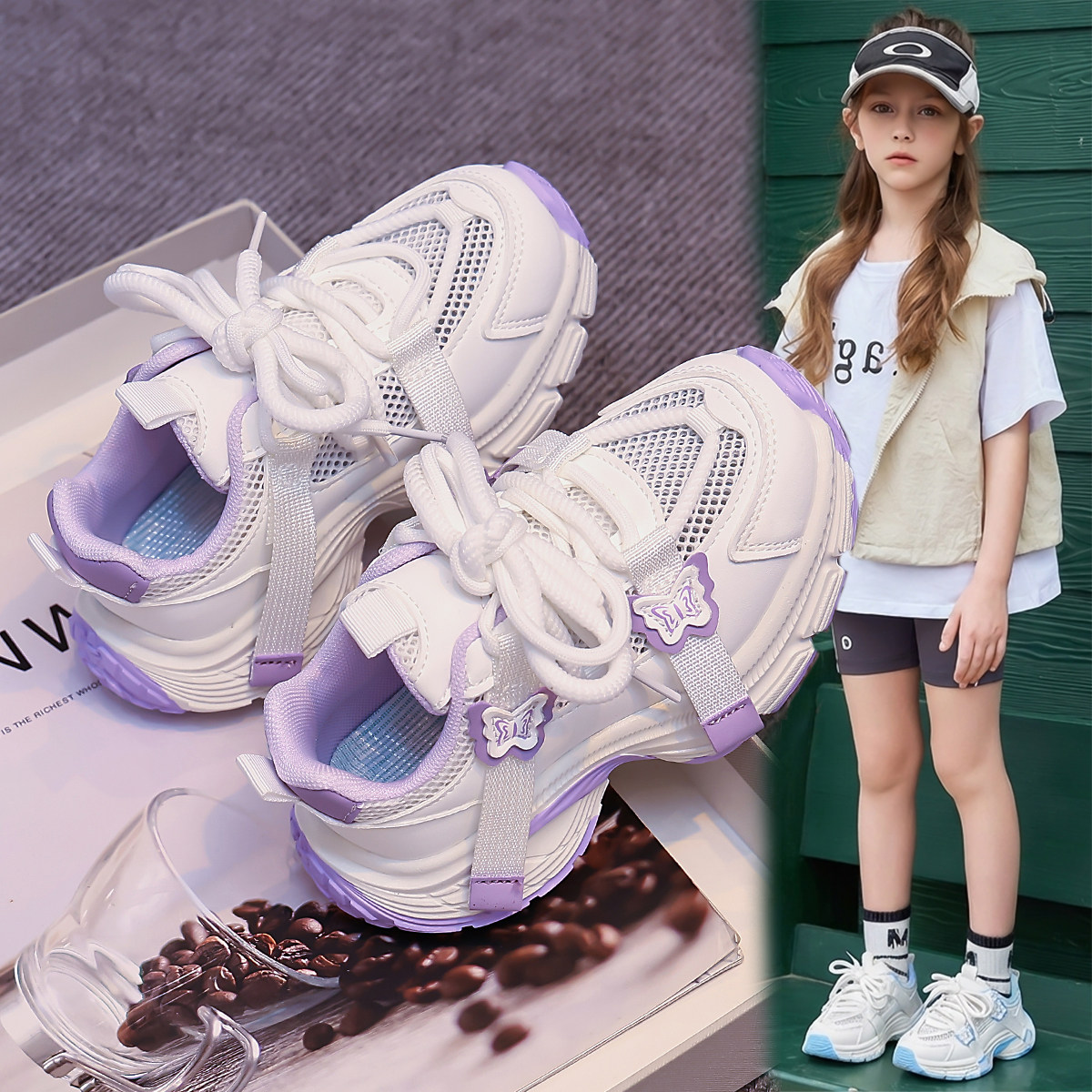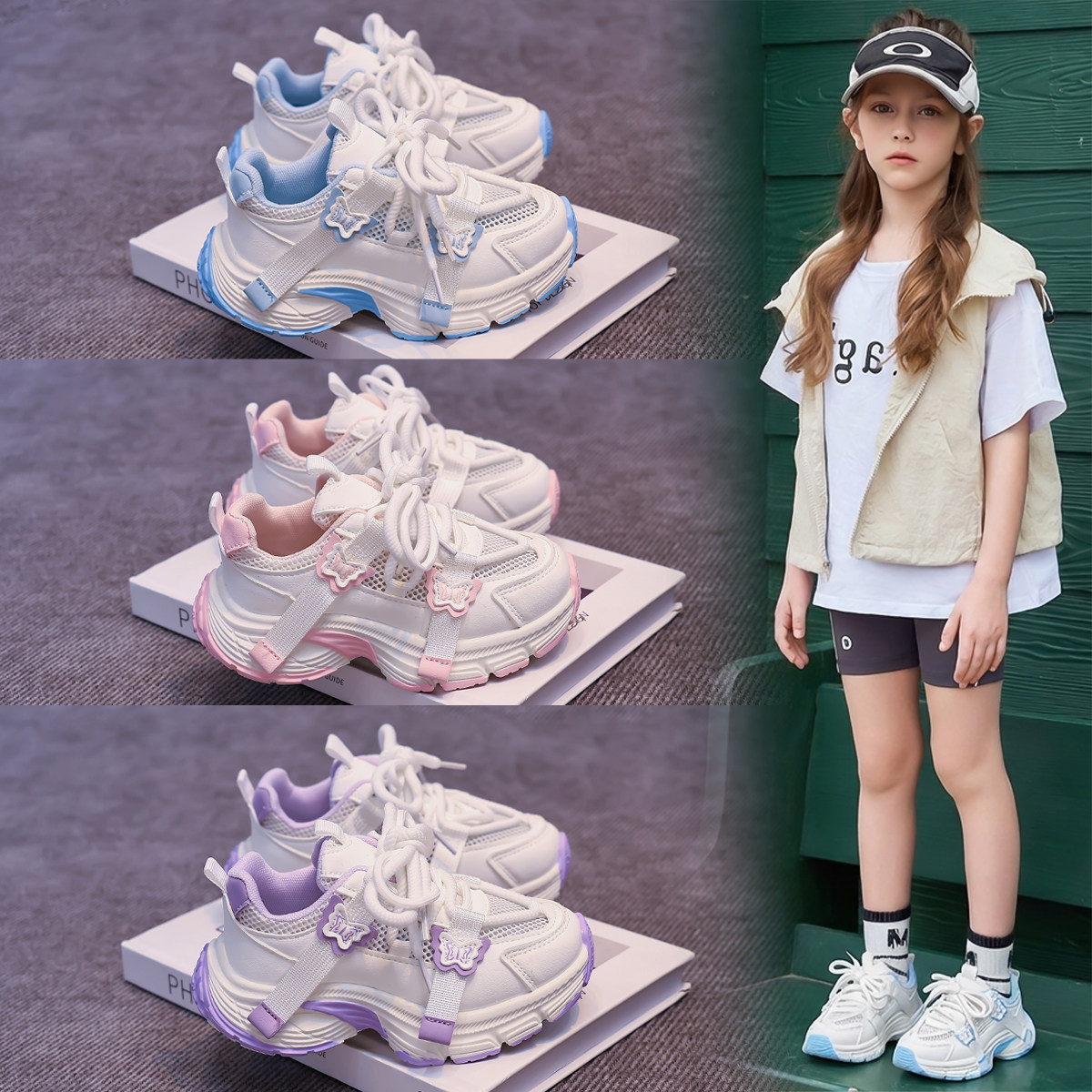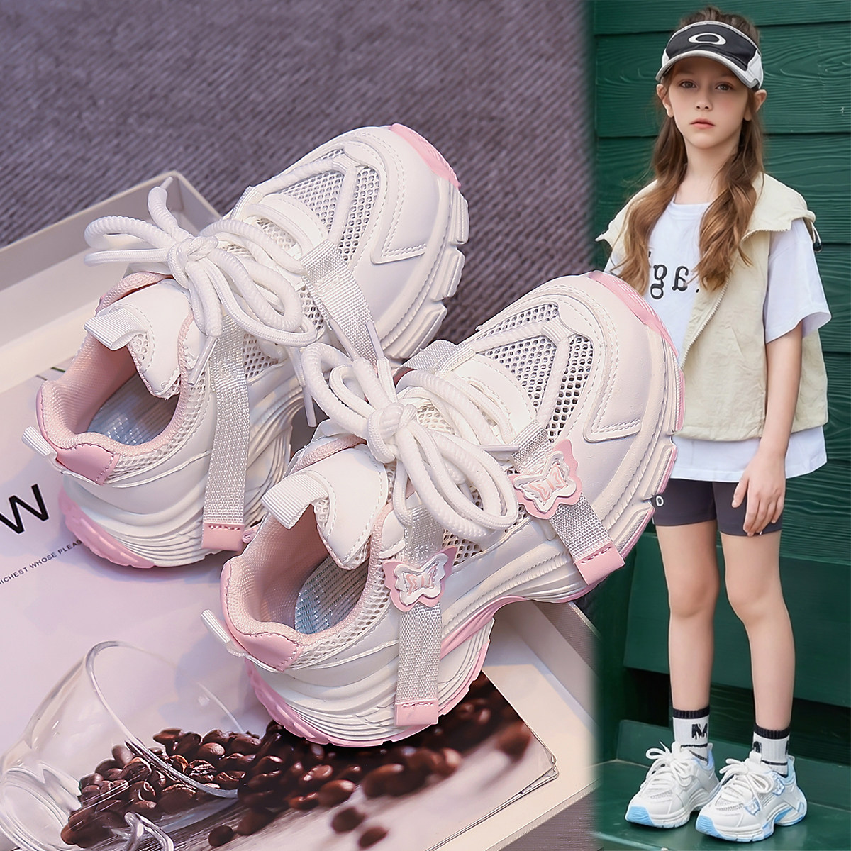 ABC Fans女童鞋子单网小白鞋2026夏季新款儿童软底透气休闲运动鞋