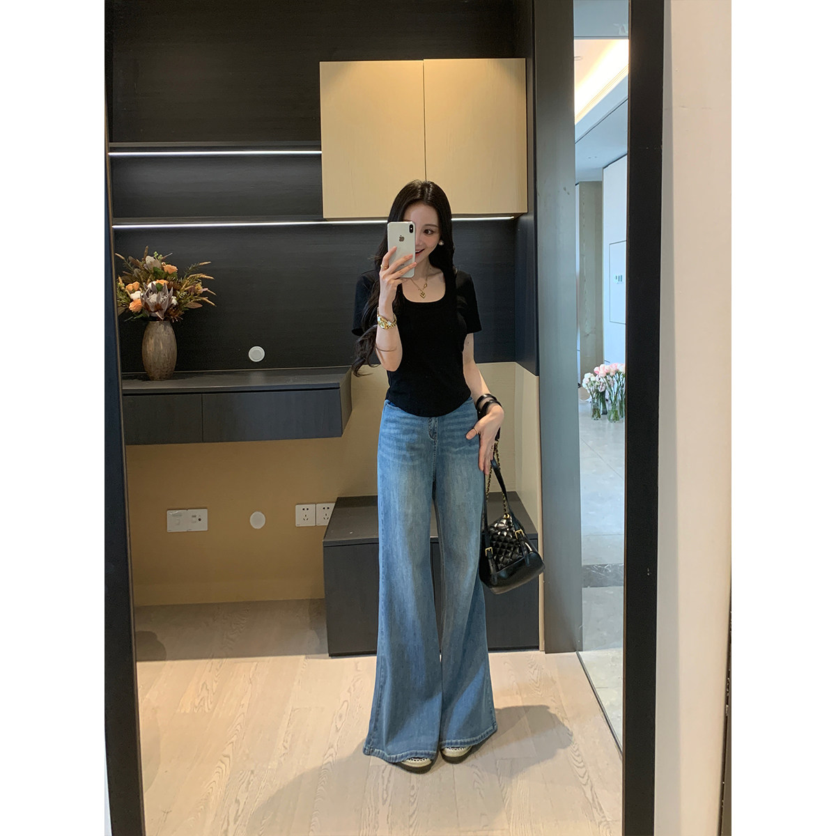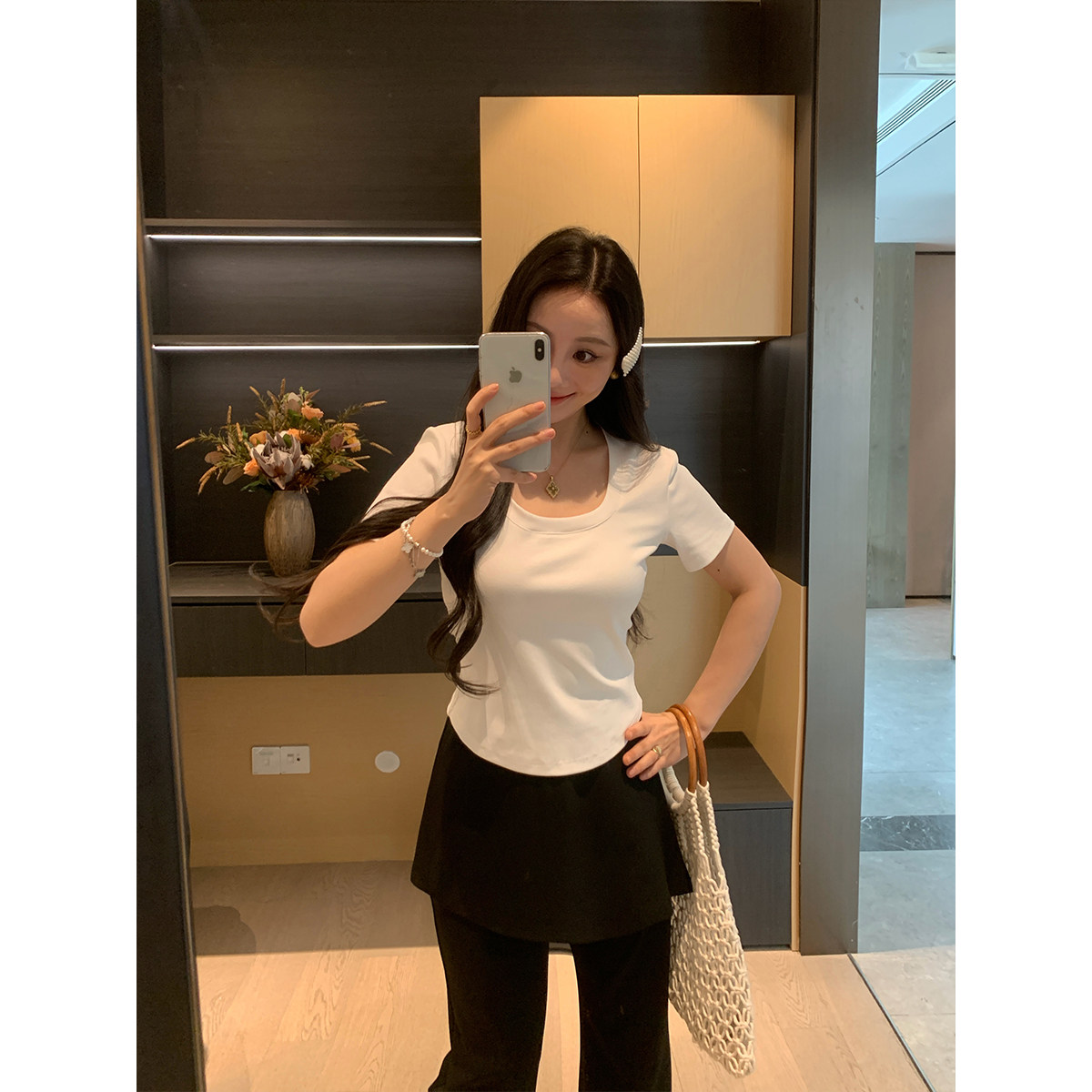XINYI【轻氧时光】春夏季圆U领正肩T恤女短袖收腰显瘦纯色上衣