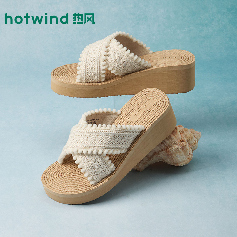热风厚底一字拖女鞋026年夏季新款坡跟增高凉鞋时尚配裙子凉拖