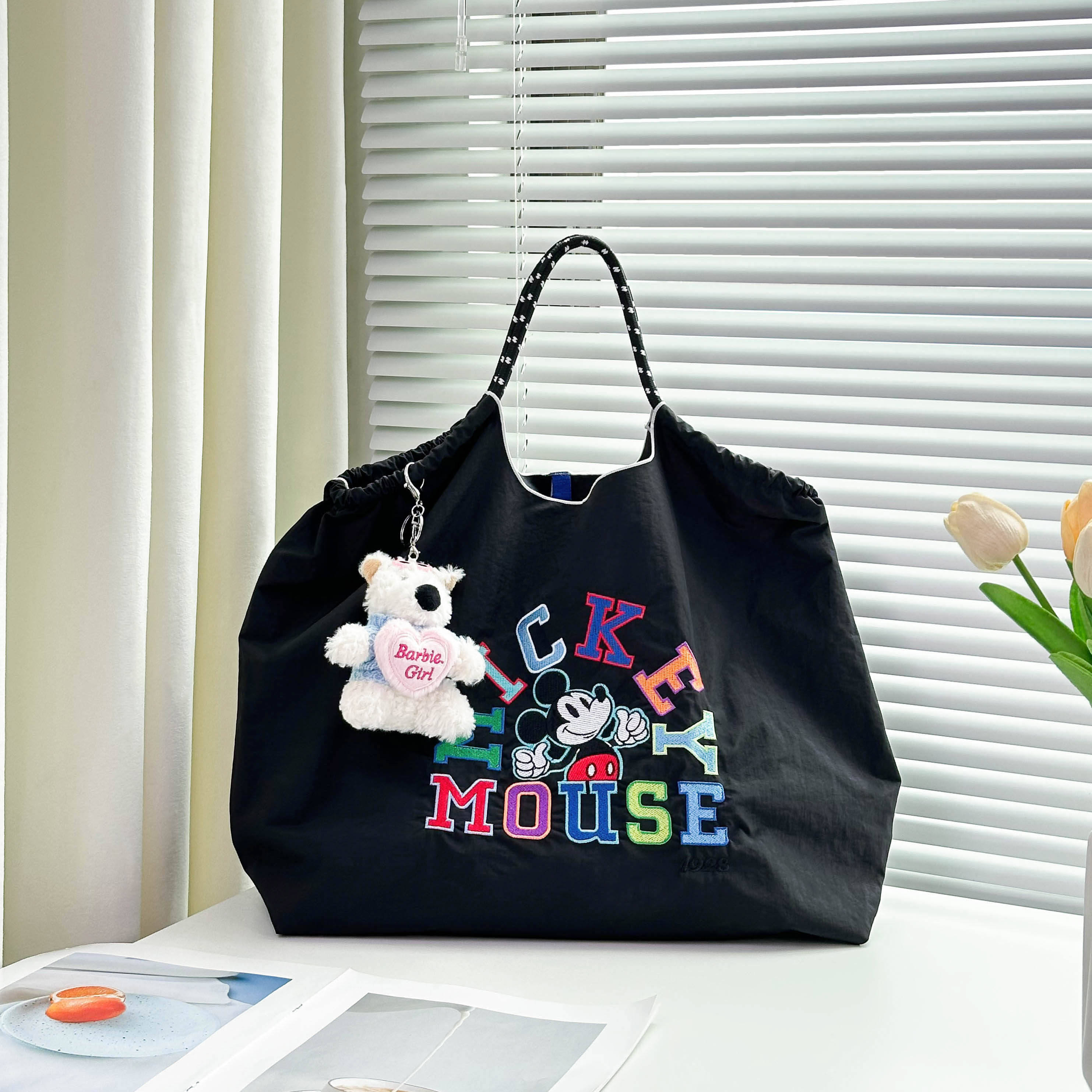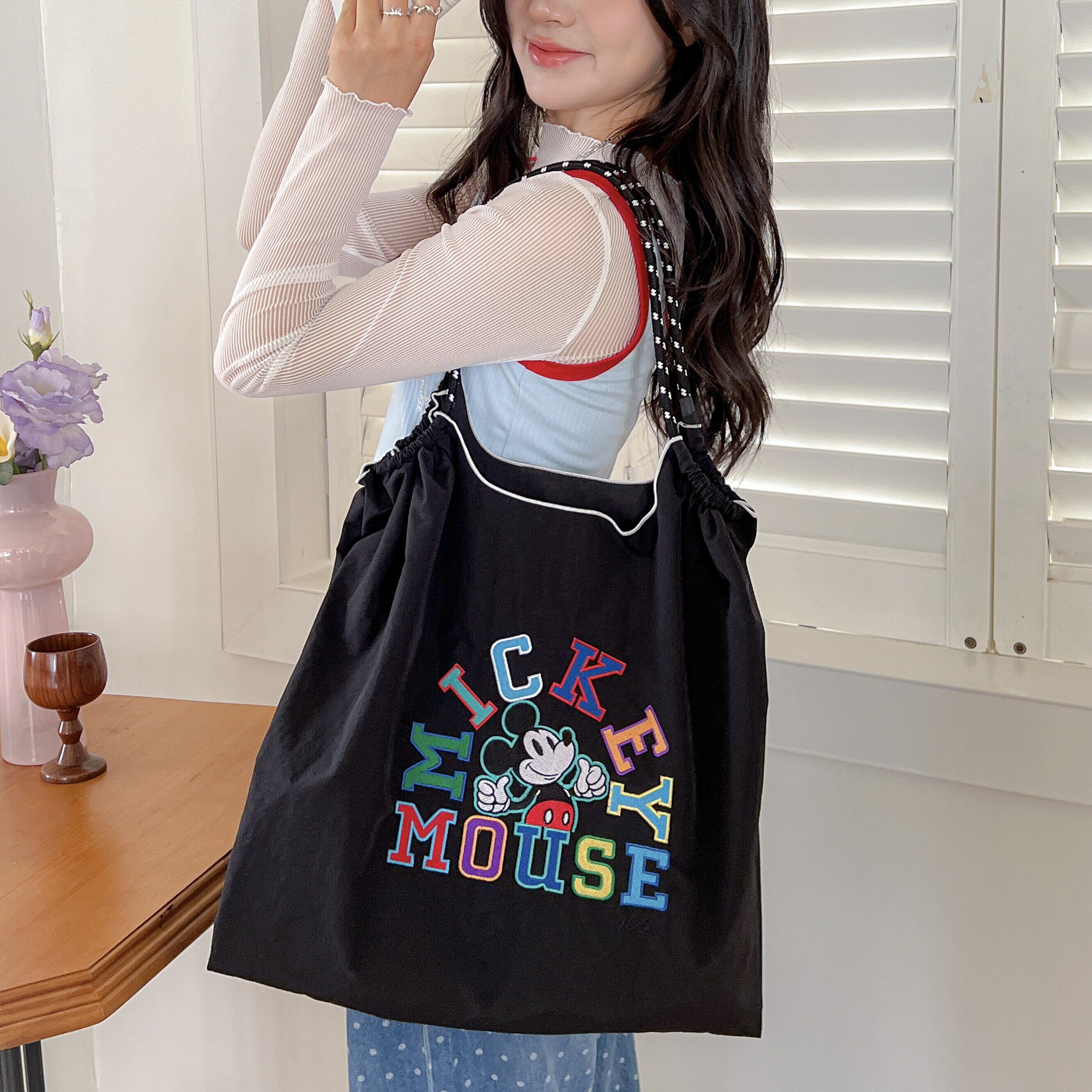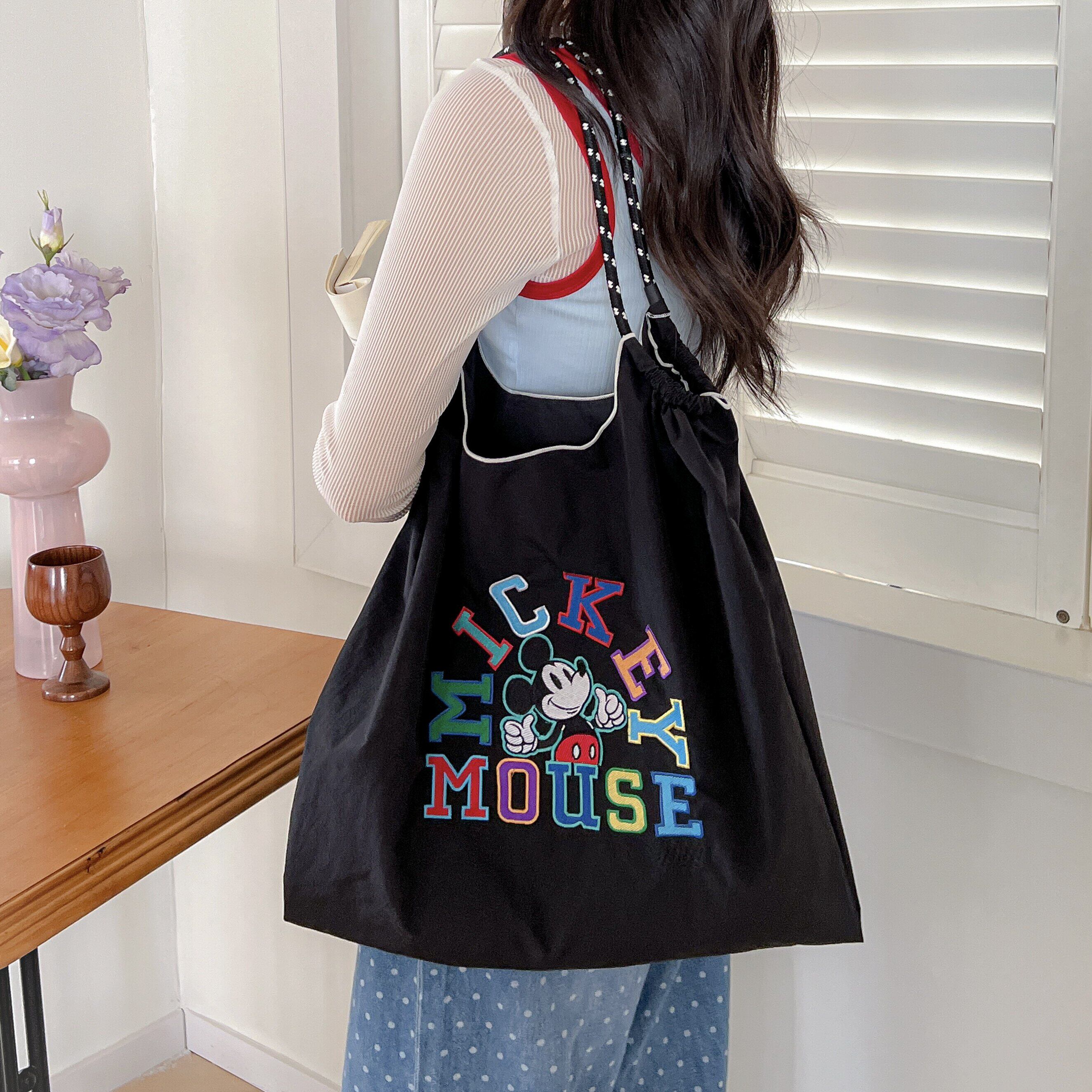 Disney迪士尼官方正品刺绣字母米老鼠环保袋帆布包女购物袋通勤包