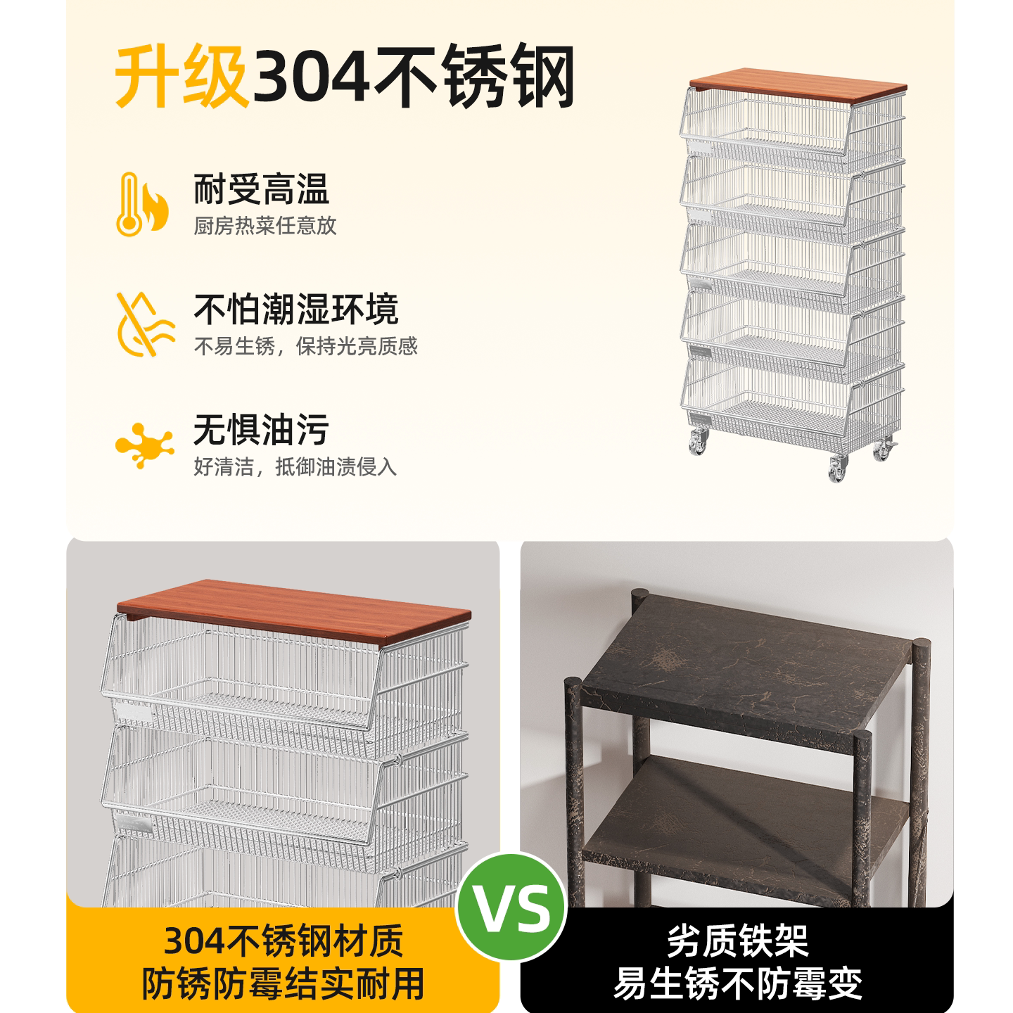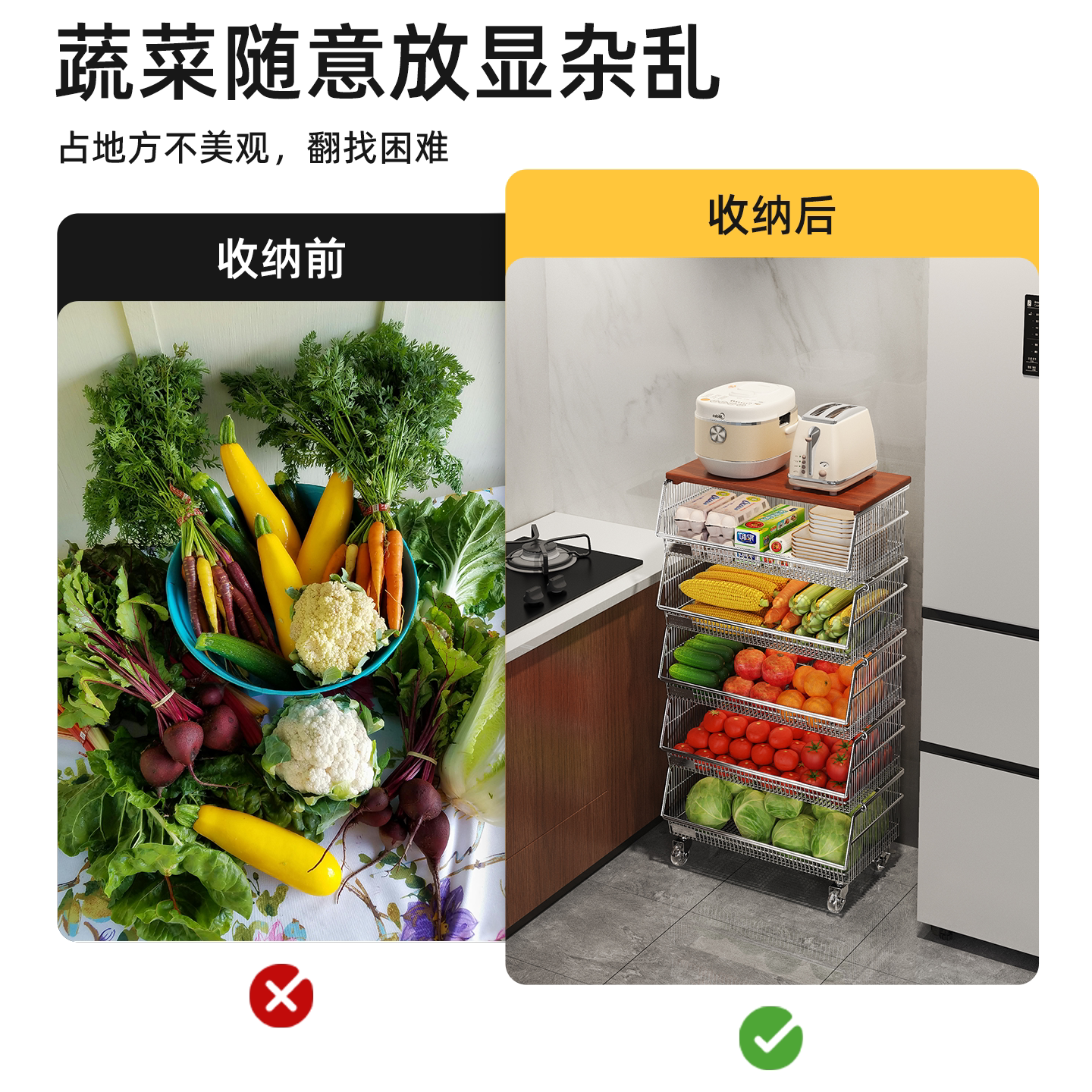 厨房菜篮子置物架不锈钢多层落地可移动放水果蔬菜家用收纳小推车