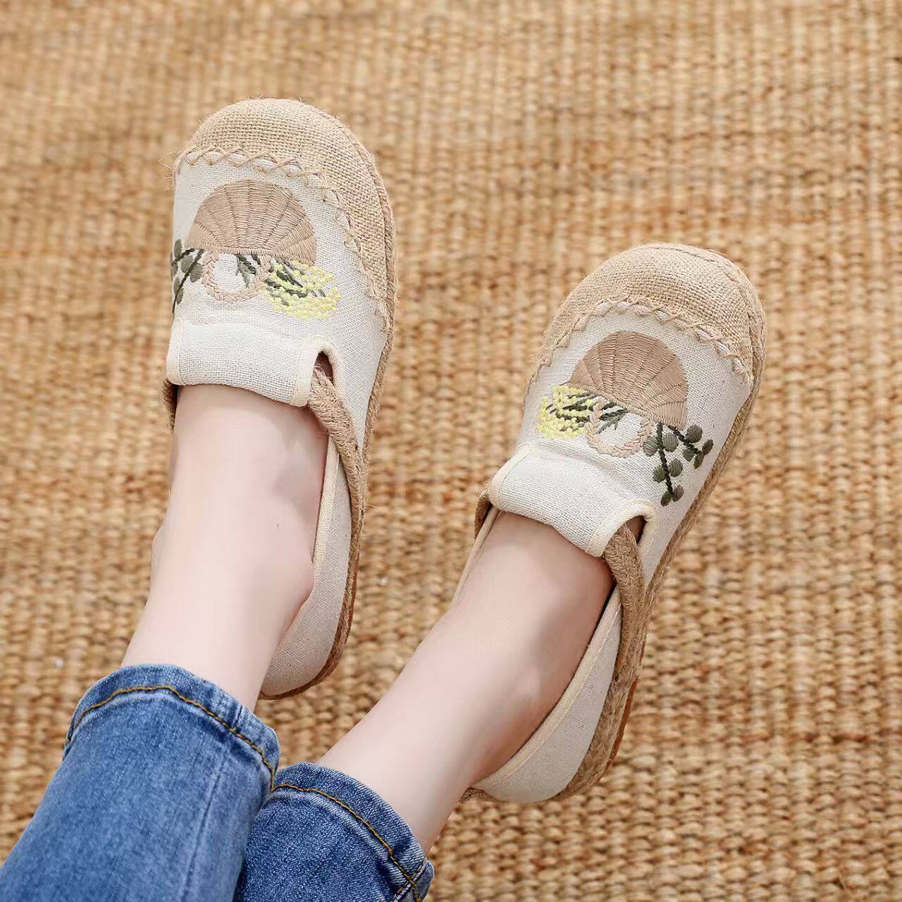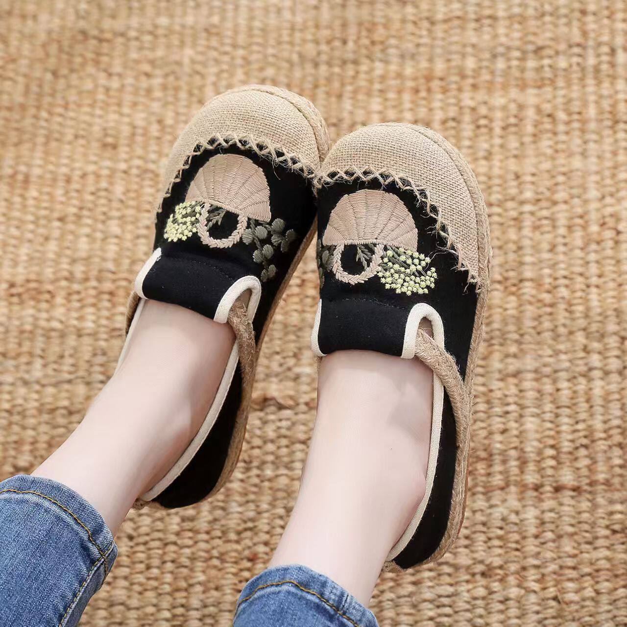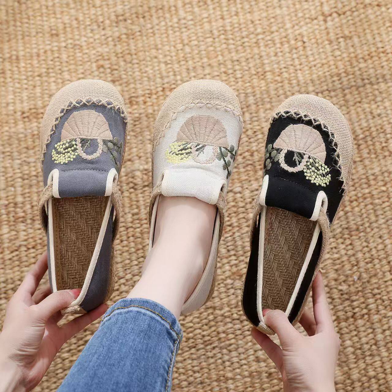 春夏新款老北京布鞋低帮绣花鞋女鞋亚麻舒适简约一脚蹬透气渔夫鞋