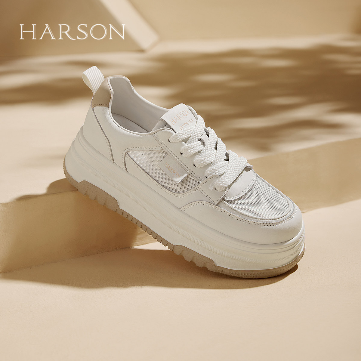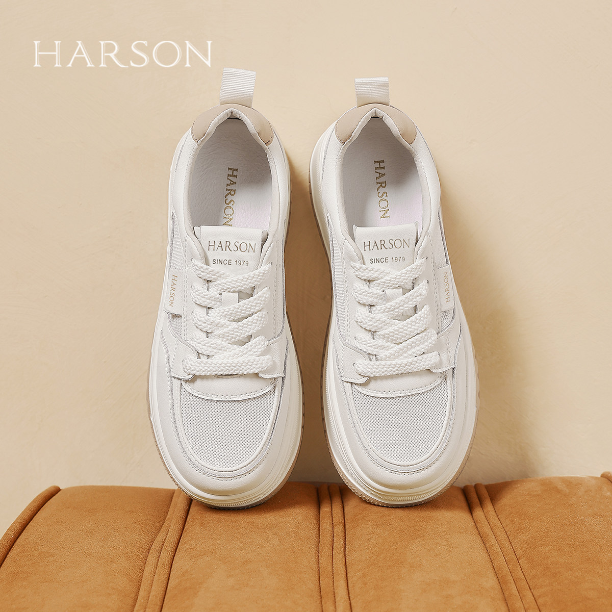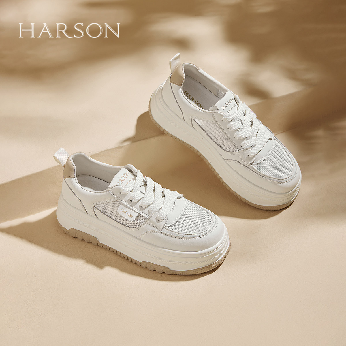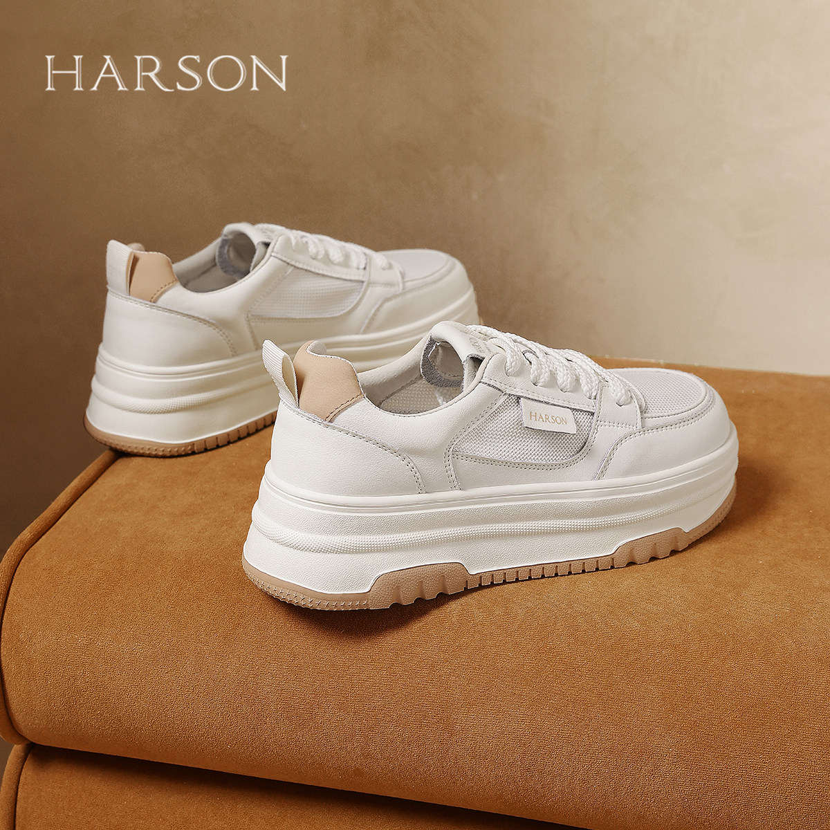 哈森厚底小白鞋女鞋2025新款增高百搭时尚休闲板鞋网眼透气运动鞋