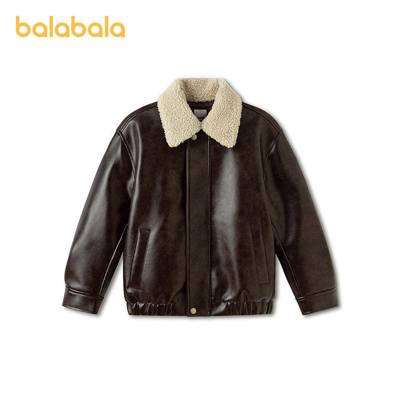【商场同款】巴拉巴拉童装儿童外套男童2026新款春装毛领皮衣棉服