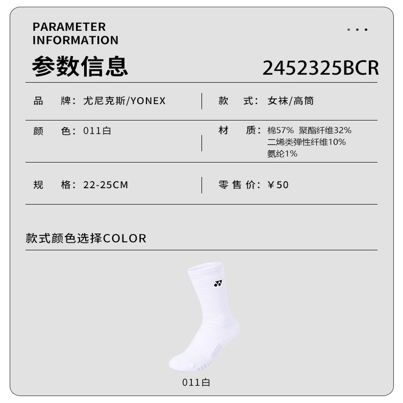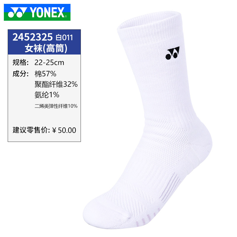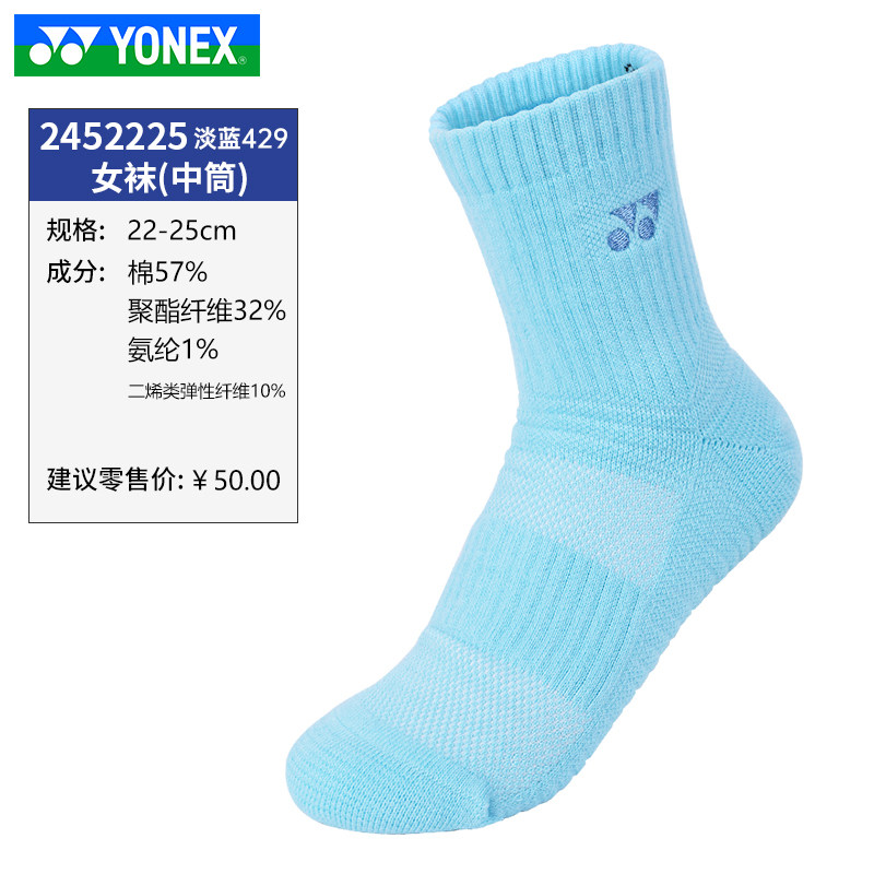YONEX尤尼克斯羽毛球袜yy女款中高筒运动袜吸汗透气2452325BCR