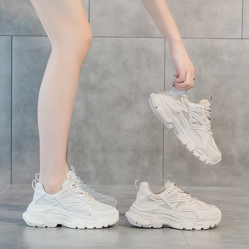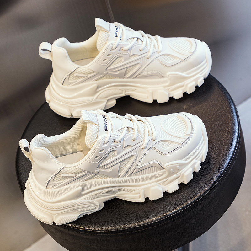 真皮老爹鞋女款2023新款春季女鞋厚底百搭网面透气运动鞋休闲鞋子