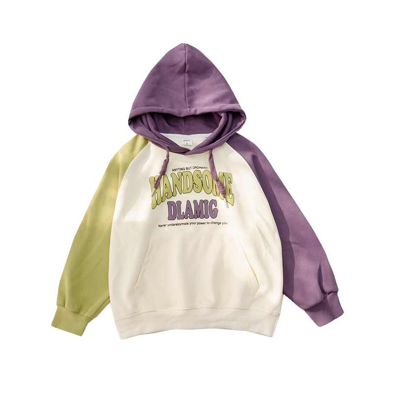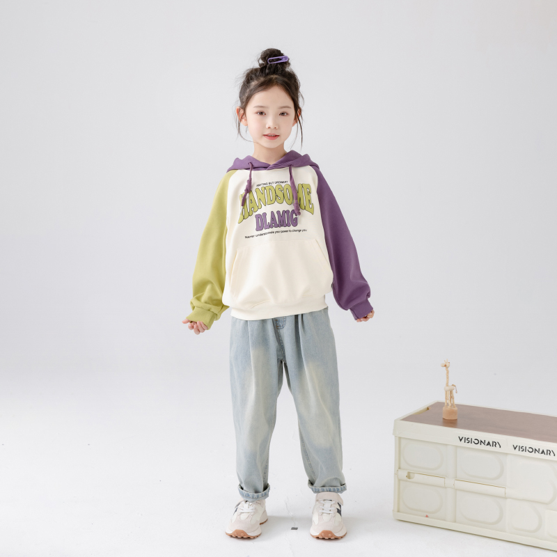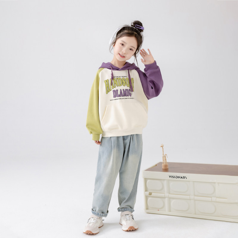 女童2026春秋季新款时尚插肩袖连帽卫衣儿童中大童宽松纯棉上衣潮