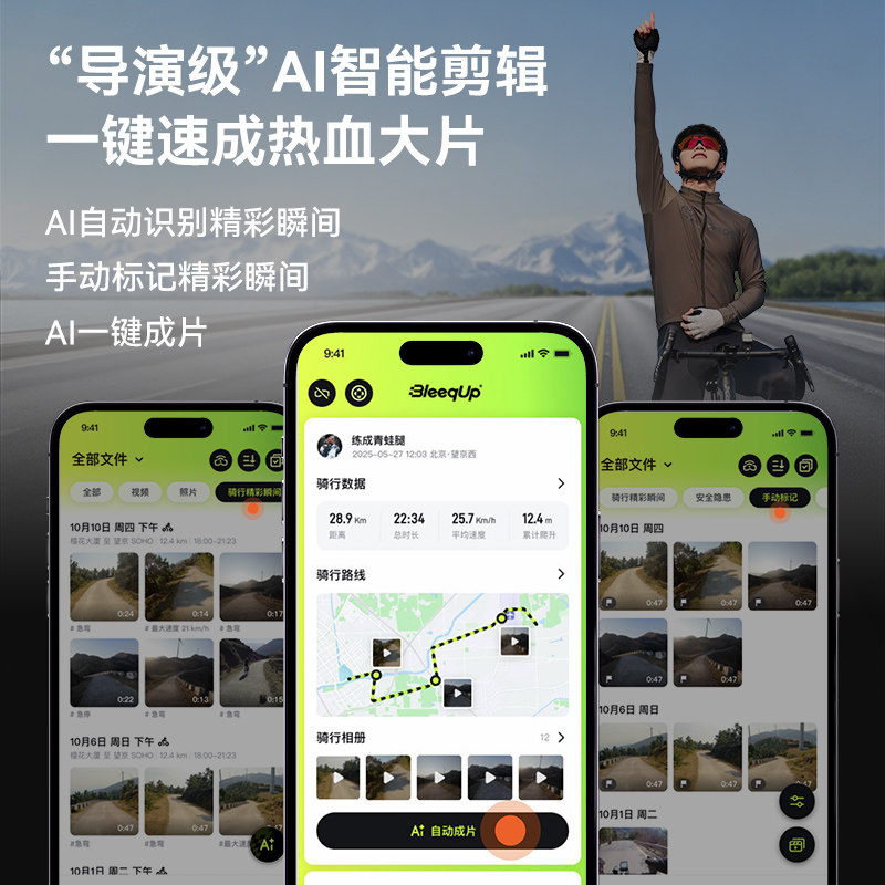 BleeqUp超影擎ranger智能AI运动拍摄眼镜相机骑行户外滑雪马拉松专业级防风沙护目镜第一视角拍摄超广角送礼