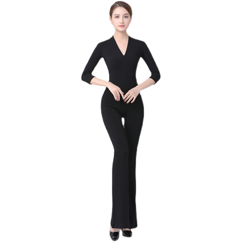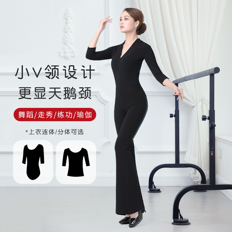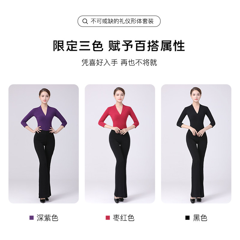 形体服女套装舞蹈艺考练功服高端导师服v领中袖型体礼仪训练服装