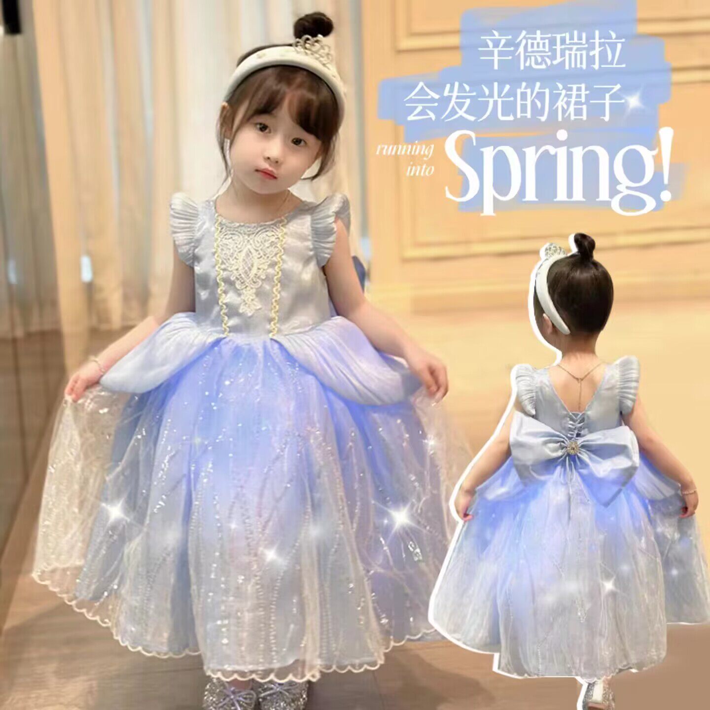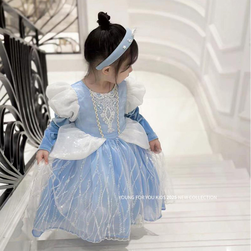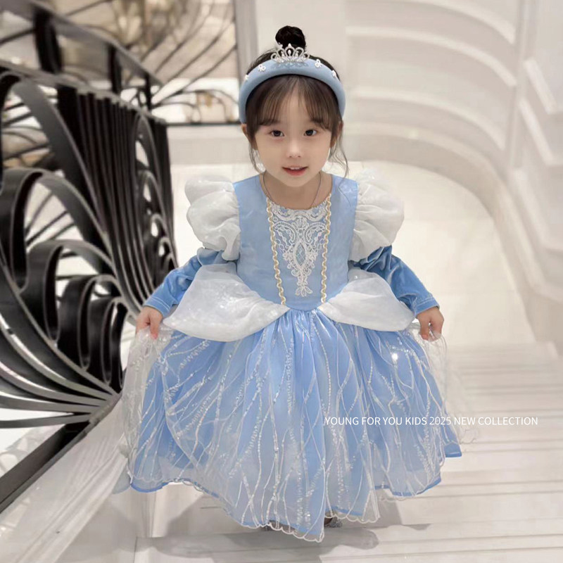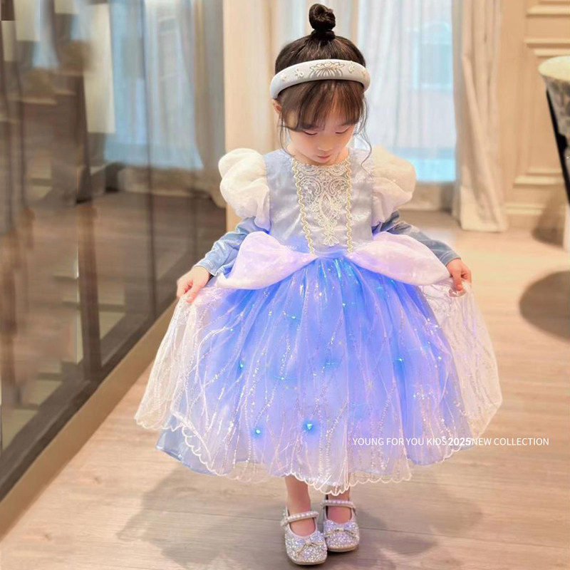 辛德瑞拉公主裙女童秋冬季生日礼服迪士尼儿童发光艾爱莎连衣裙子