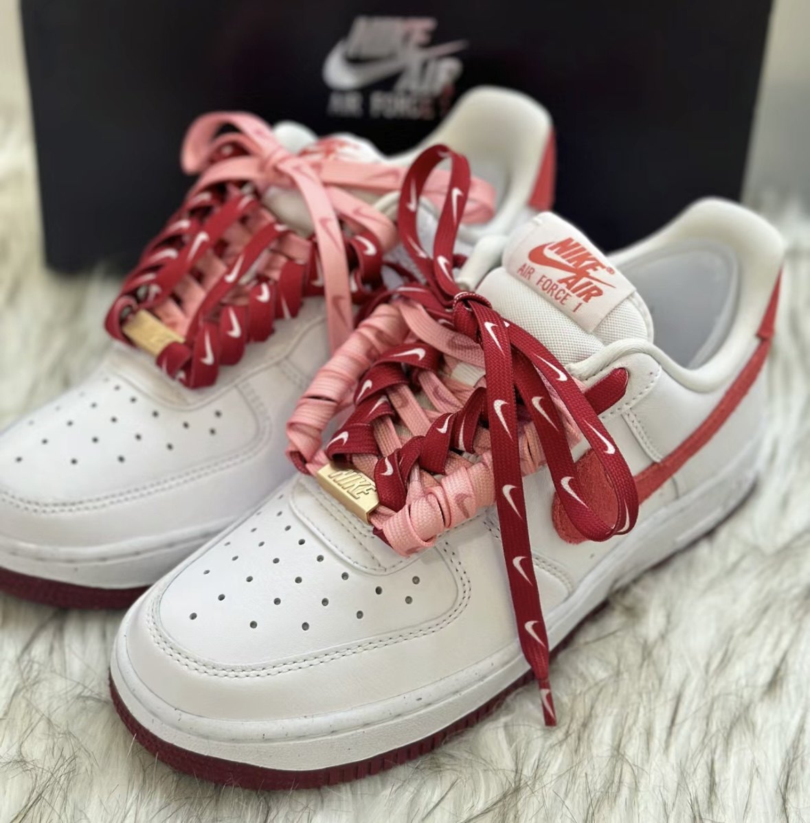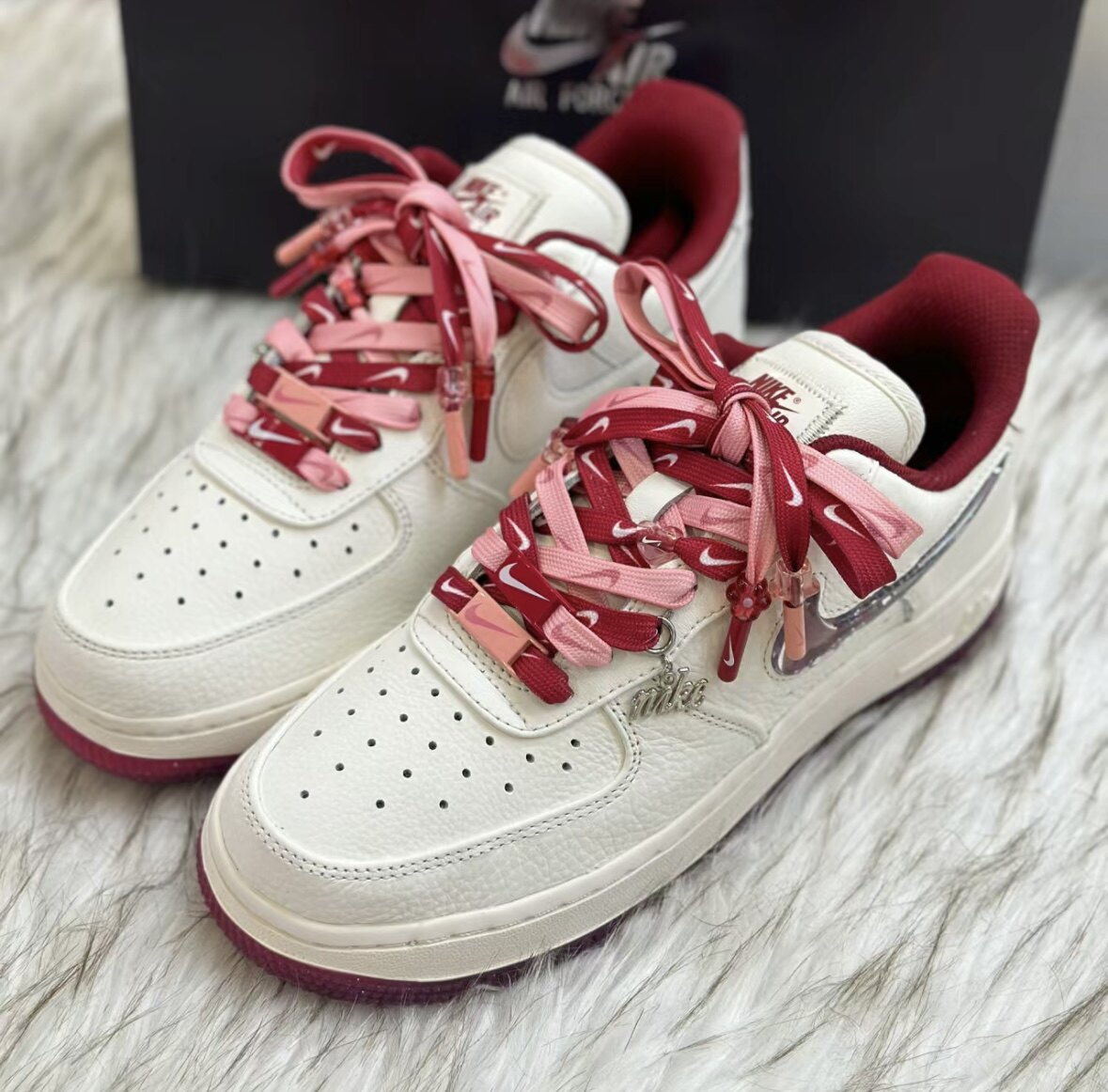 AF1空军一号情人节限定樱桃刺绣鞋带白红粉酒红色爱心鞋带扣配件