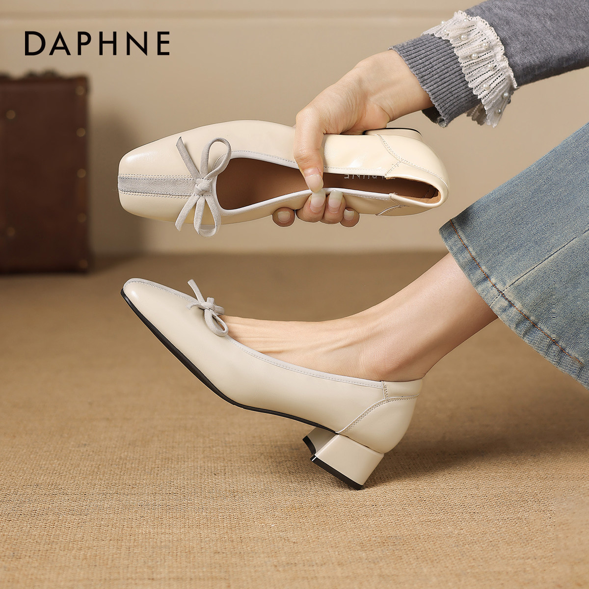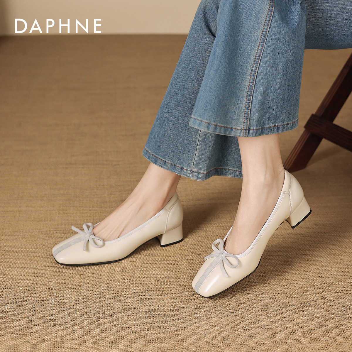 达芙妮平底单鞋女款2026新款春夏季方头粗跟皮鞋玛丽珍女鞋高跟鞋