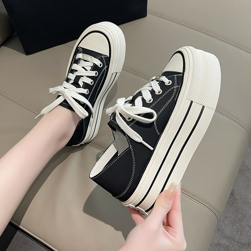 帆布鞋女2026新款春季一脚蹬厚底小白鞋百搭内增高休闲板鞋懒人鞋
