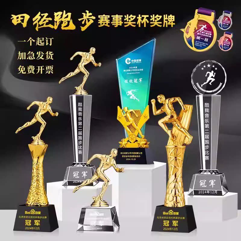跑步奖杯定制水晶体育运动会奖牌马拉松比赛接力赛长跑冠军