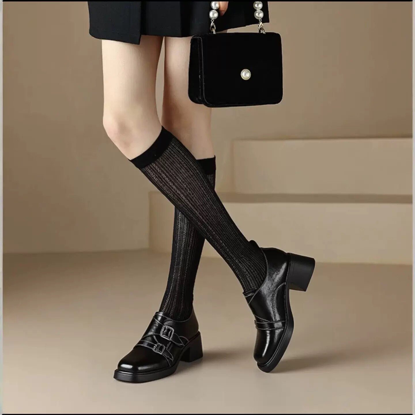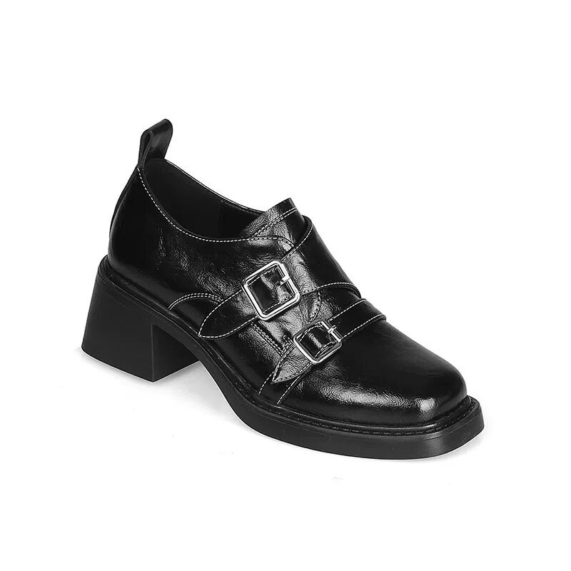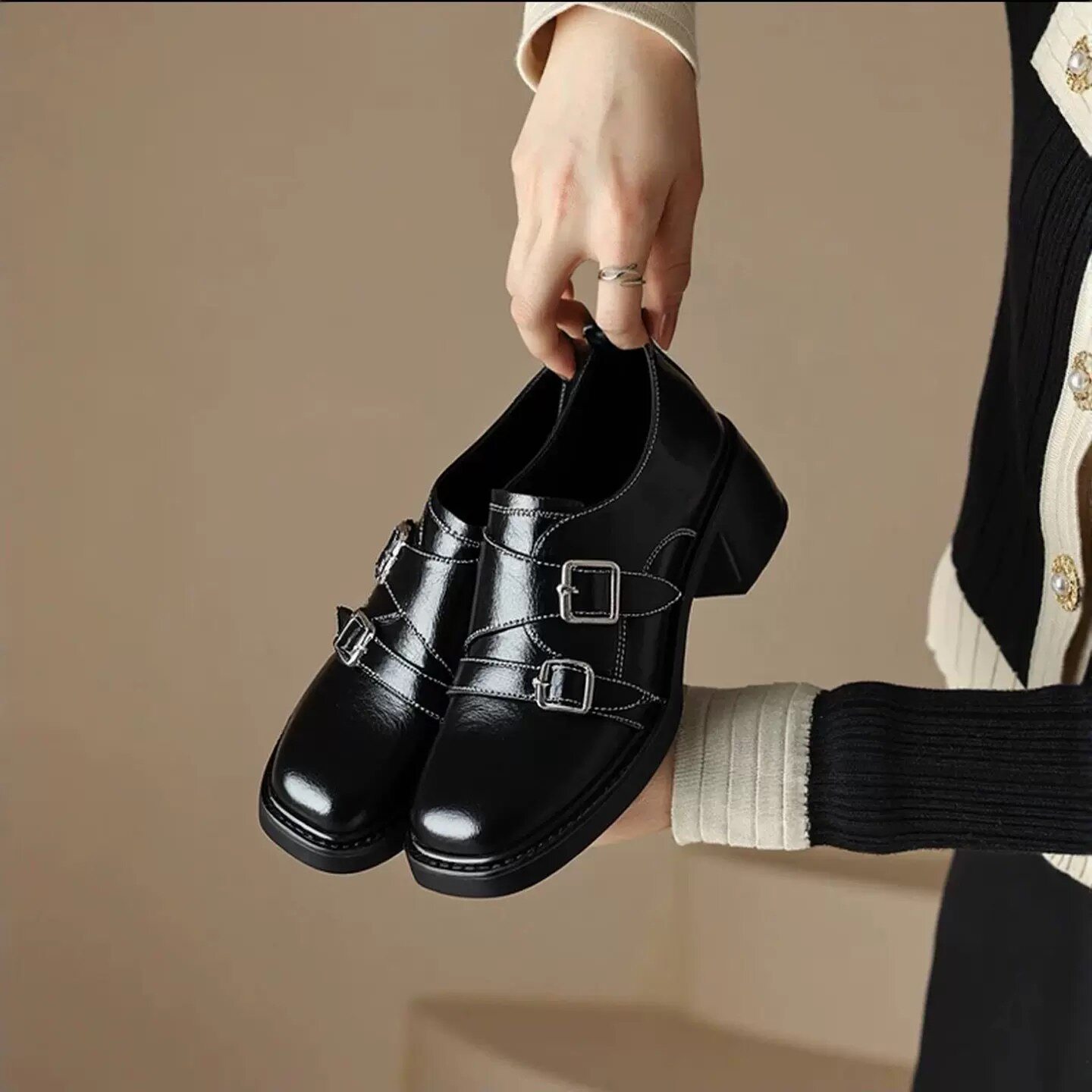 2026新款真皮春季英伦风时尚百搭复古双搭扣女单鞋厚底粗跟乐福鞋