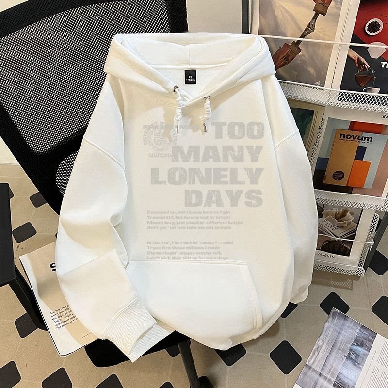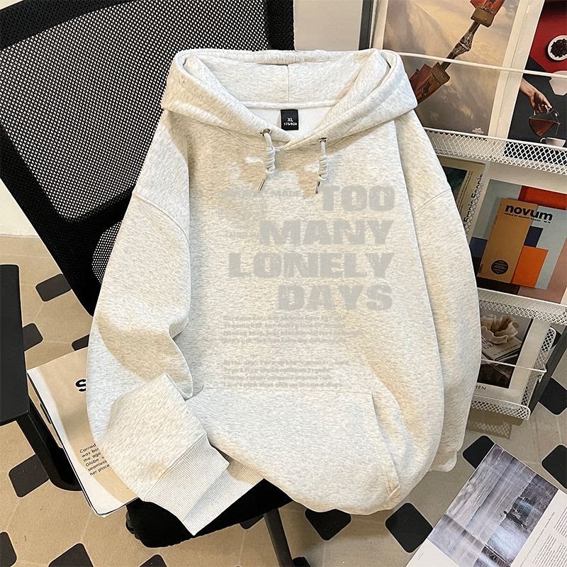 纯棉卫衣男重磅美式复古风正肩高级上衣秋冬时尚加绒加厚简约印花