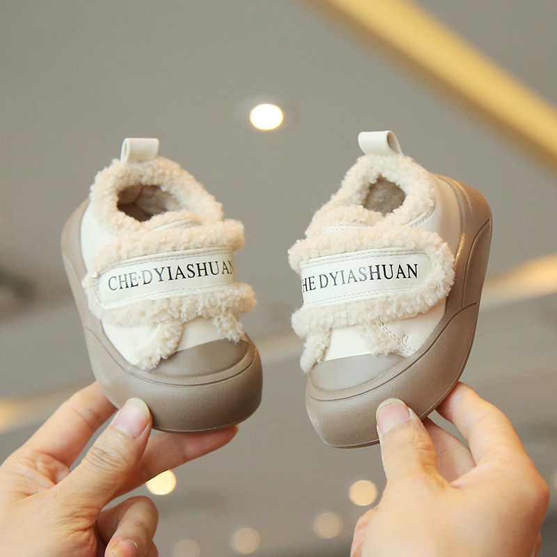 冬季新款小童加绒休闲鞋1一2岁男童学步鞋子女宝宝软底棉鞋女童鞋