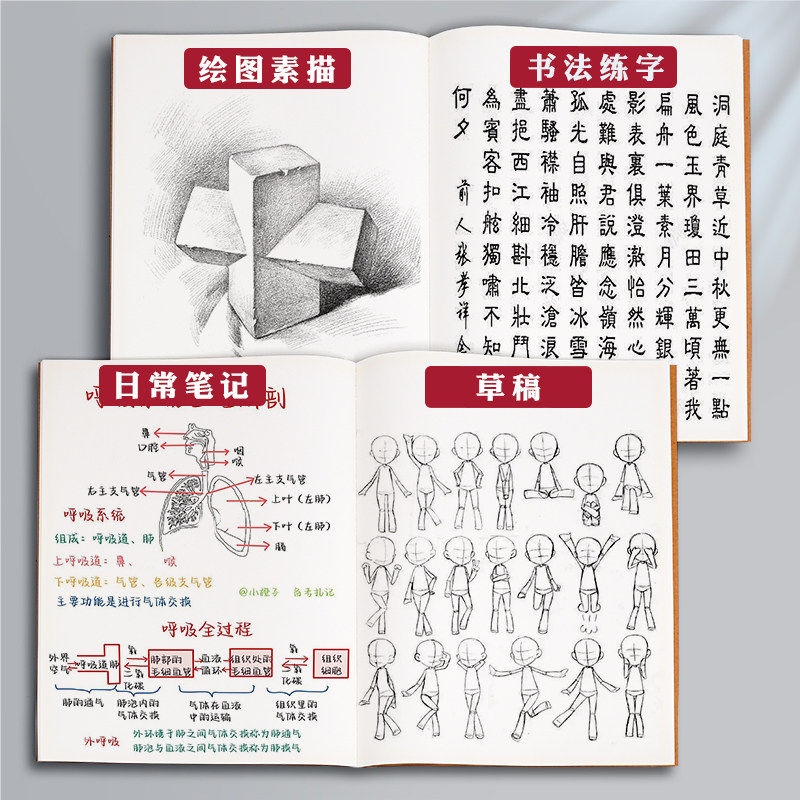 a4空白本牛皮薄笔记本本子白纸本b5图画画本数学草稿本小学生用大本子a5空白内页思维导图美术本平摊横线线装